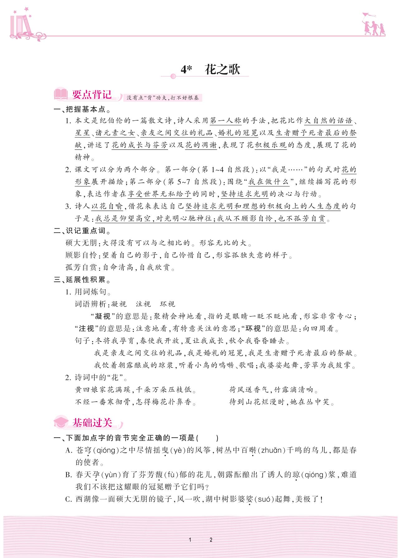 2020上册六年级语文人教版 第一单元——4 花之歌