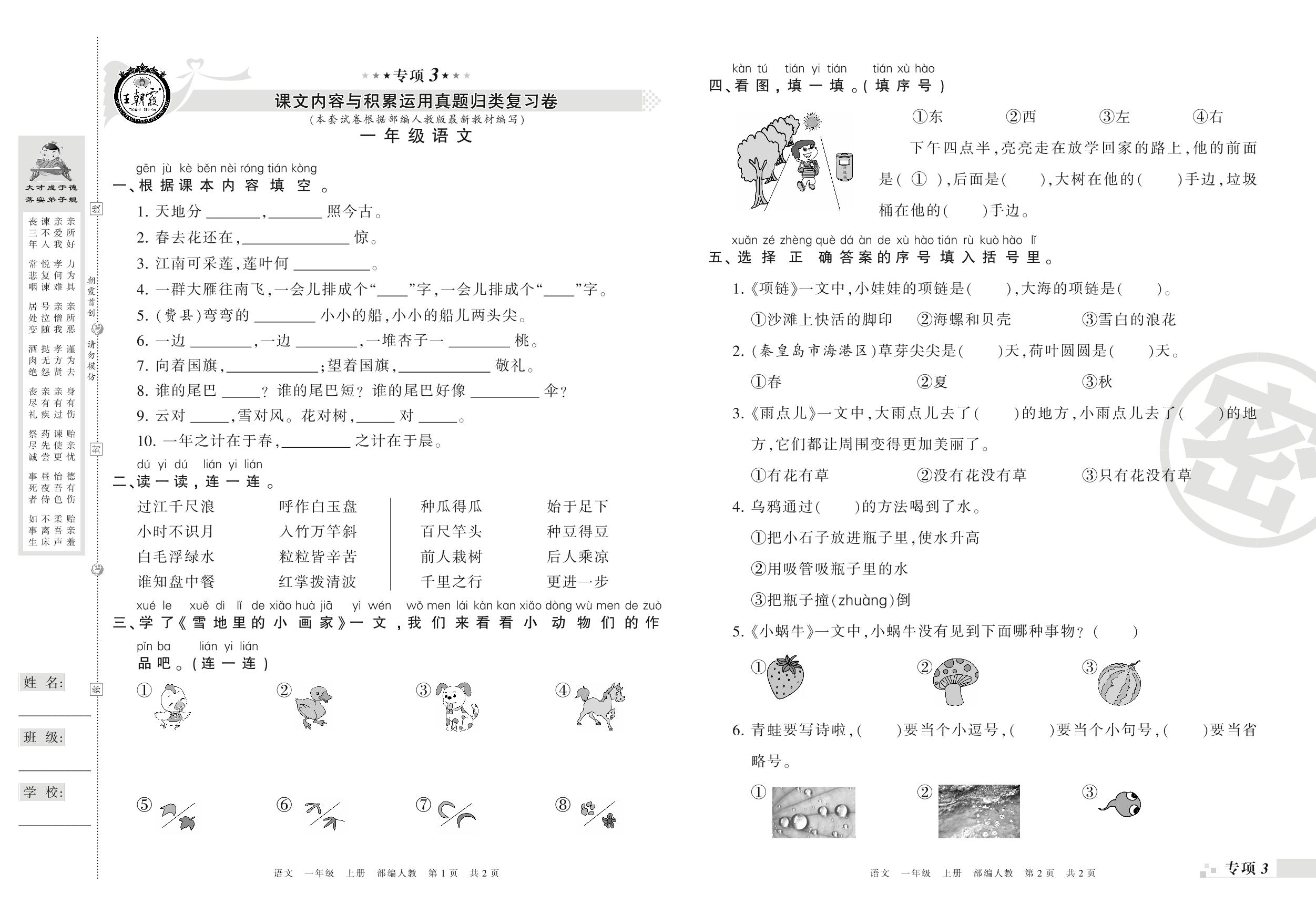 王朝霞期末专项卷——课文内容与积累运用、口语交际与写话真题归类复习卷一年级上册语文(人教版)_R210731180740【0】