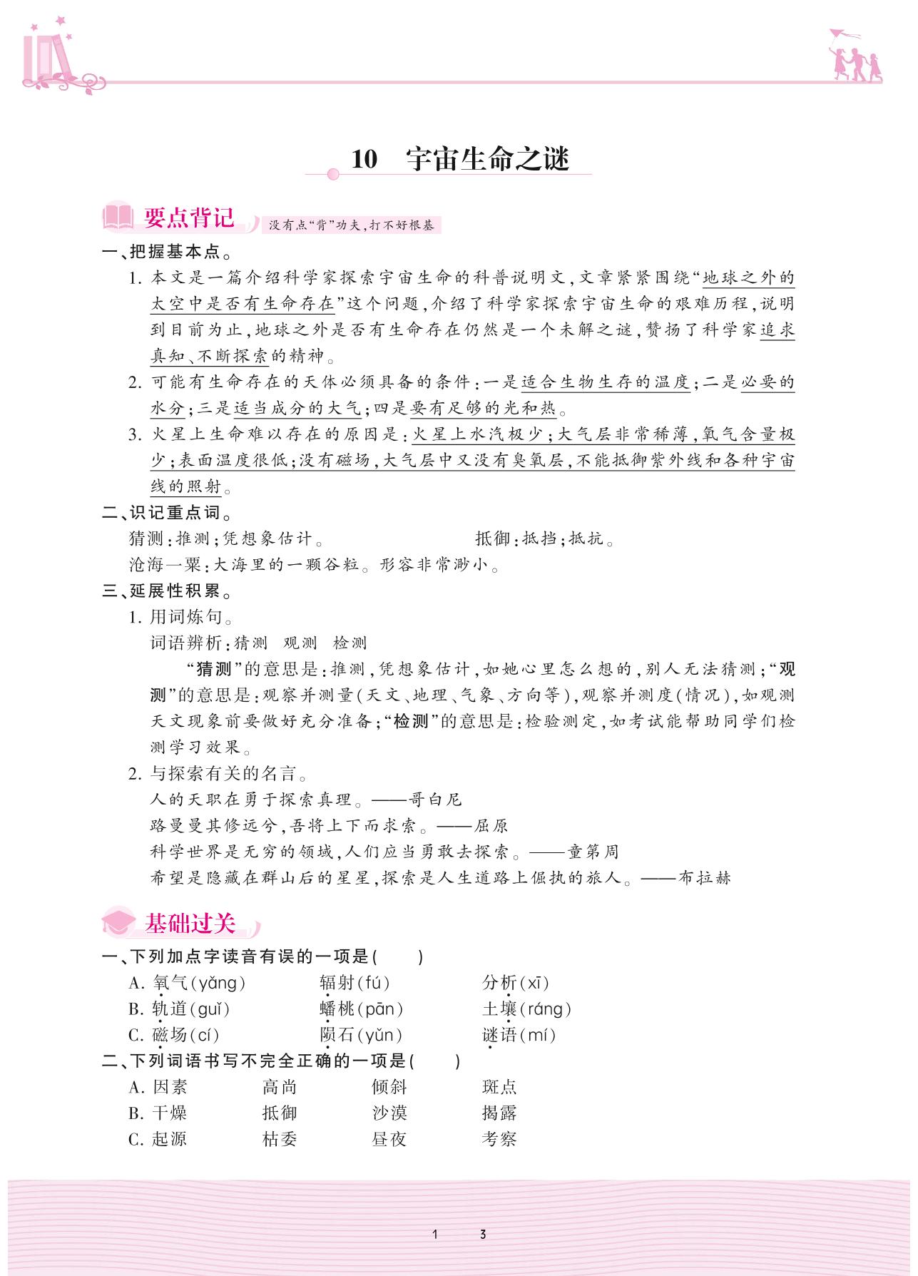 2020上册六年级语文人教版 第三单元——10 宇宙生命之谜