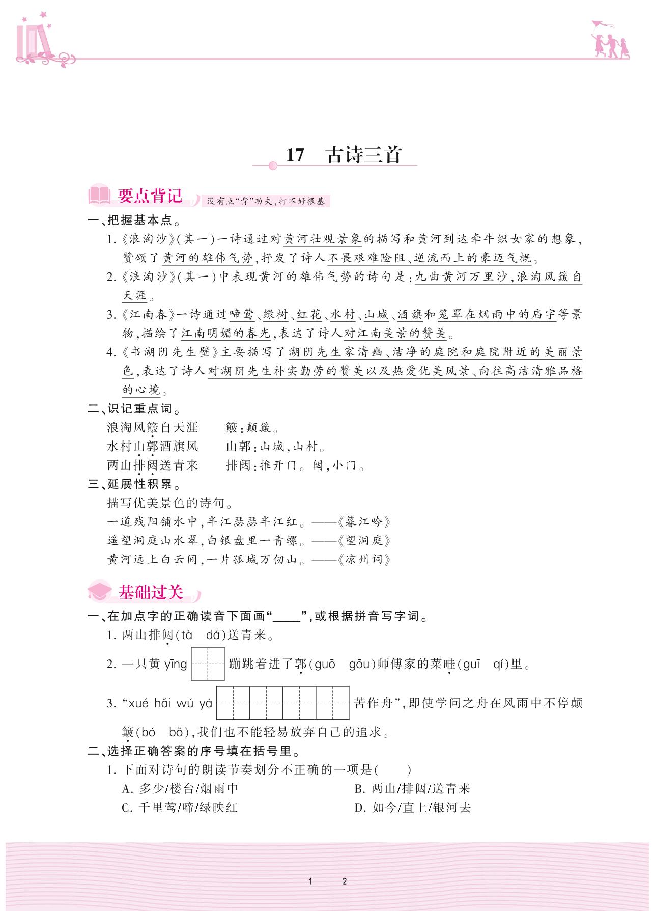 2020上册六年级语文人教版 第六单元——17 古诗三首