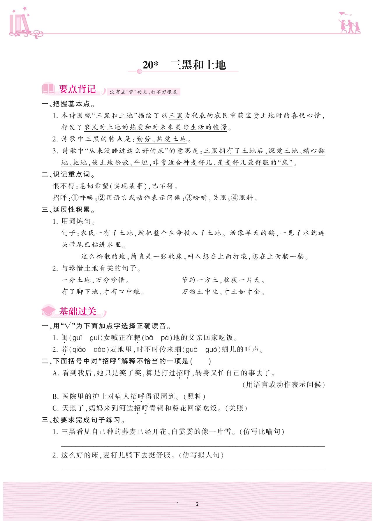 2020上册六年级语文人教版 第六单元——20 三黑和土地