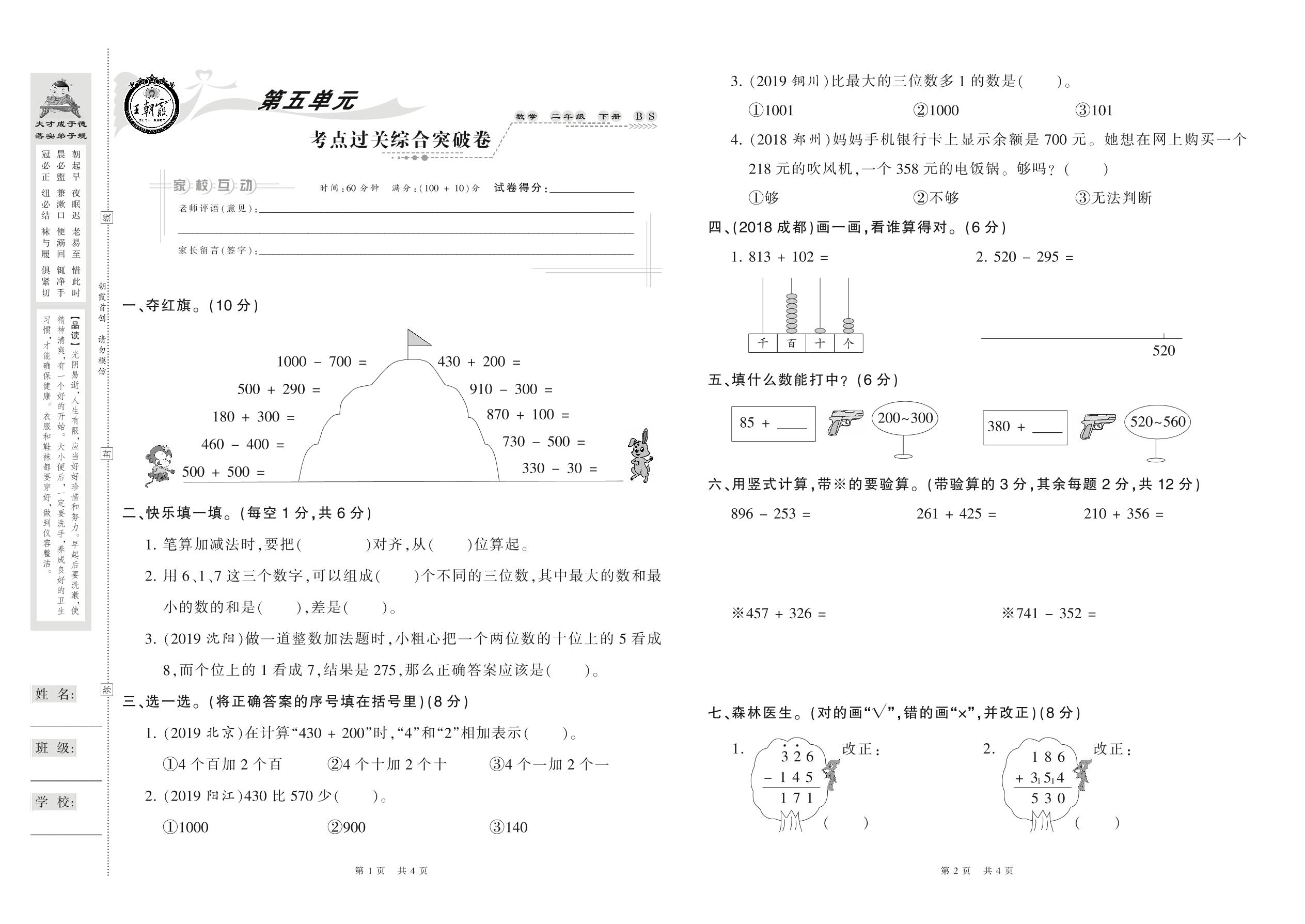 2021下册二年级数学北师版 第五单元 考点过关综合突破卷