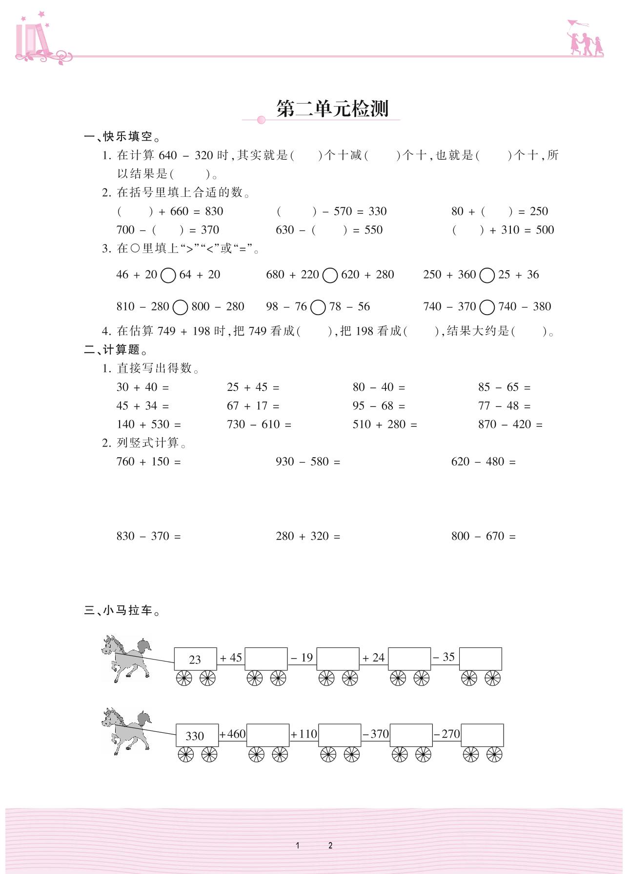 2020上册三年级数学人教版 2 万以内的加法和减法(一)——第二单元检测
