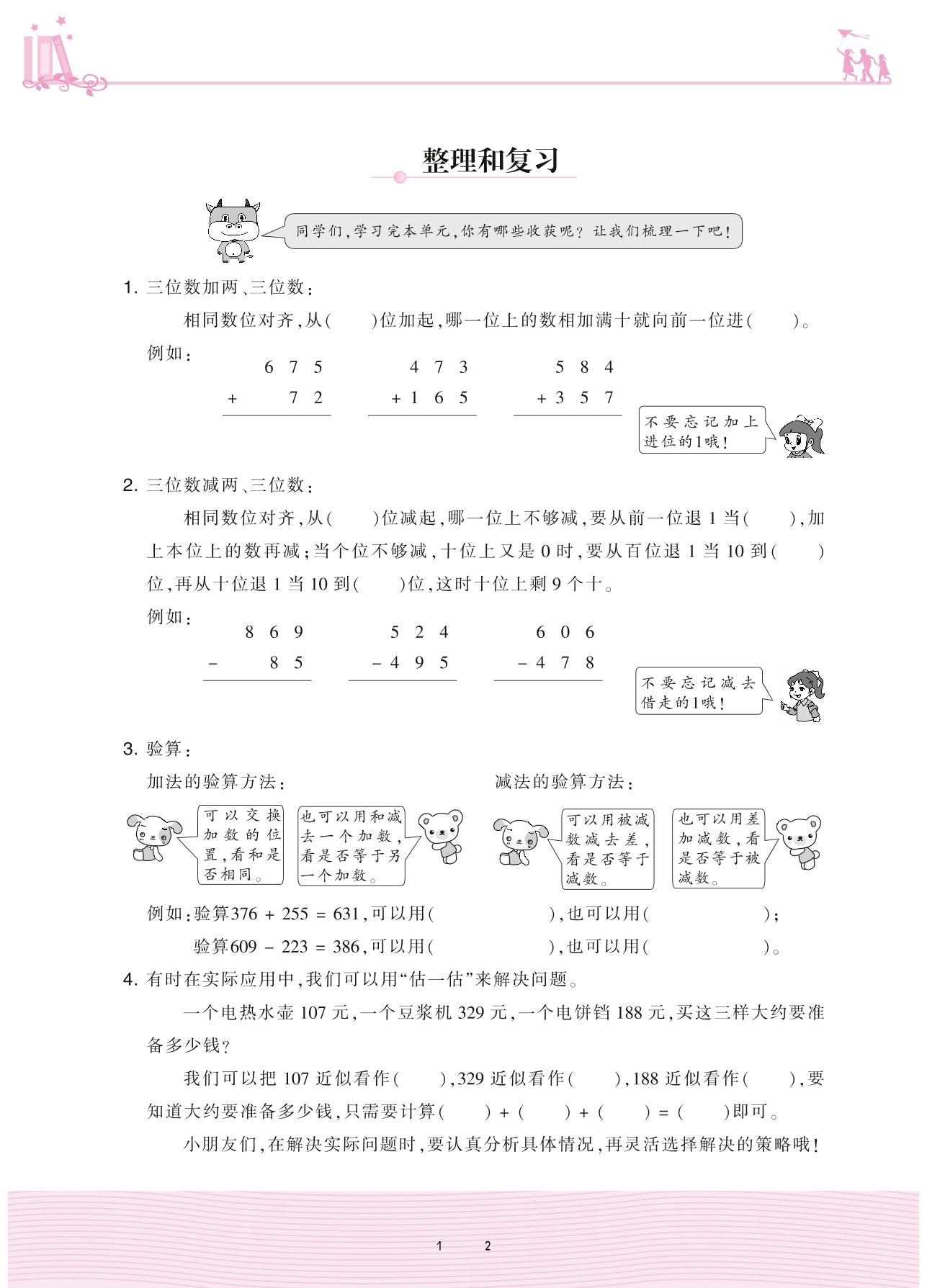2020上册三年级数学人教版 4 万以内的加法和减法(二)——整理和复习