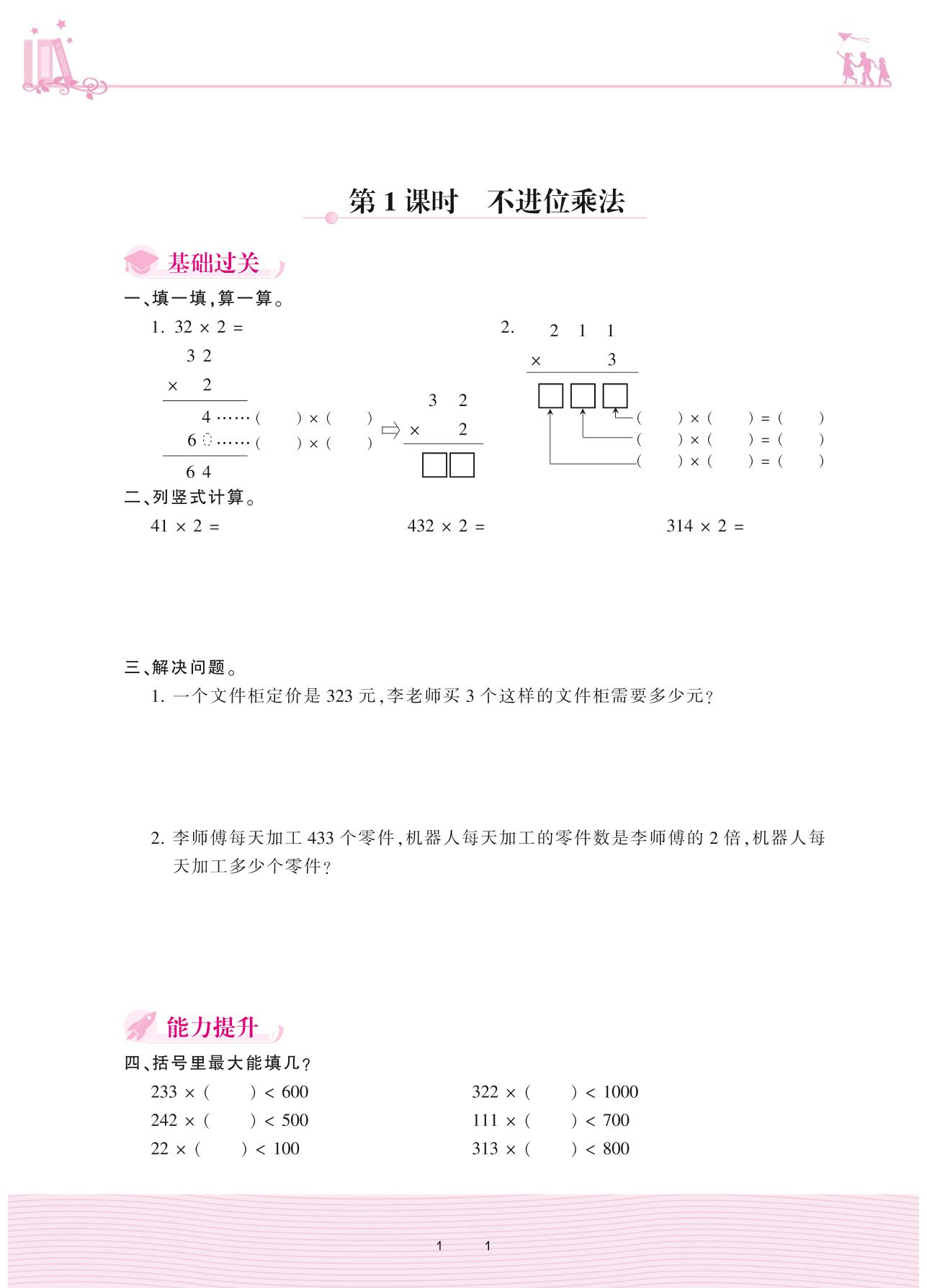 2020上册三年级数学人教版 6 多位数乘一位数 2. 笔算乘法——第1课时 不进位乘法