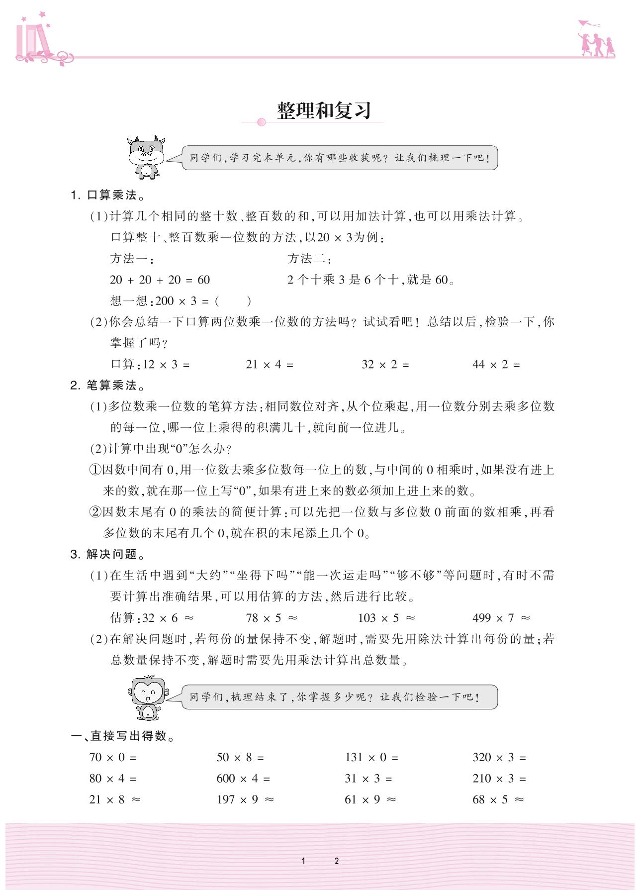 2020上册三年级数学人教版 6 多位数乘一位数——整理和复习