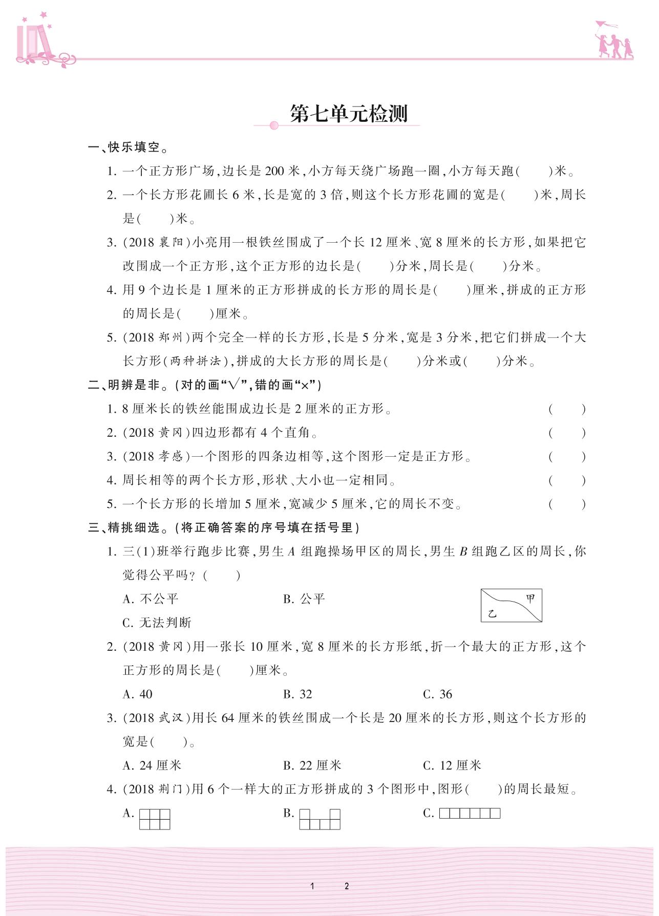 2020上册三年级数学人教版 7 长方形和正方形——第七单元检测