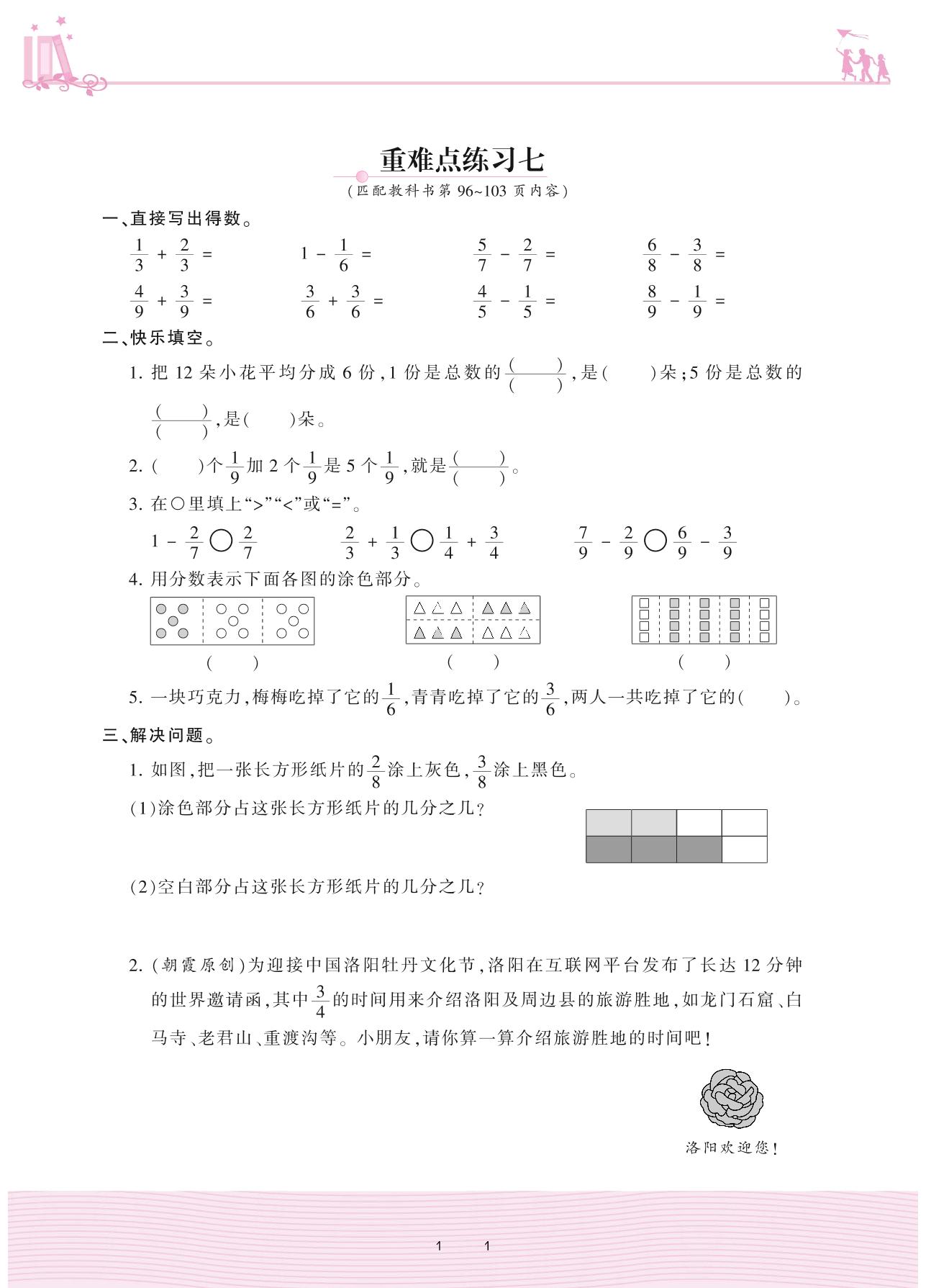 2020上册三年级数学人教版 8 分数的初步认识——重难点练习七