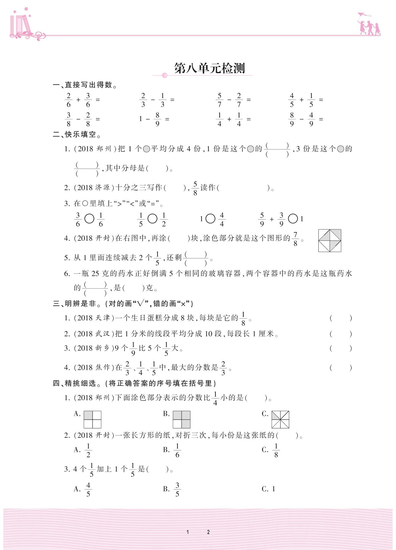 2020上册三年级数学人教版 8 分数的初步认识——第八单元检测