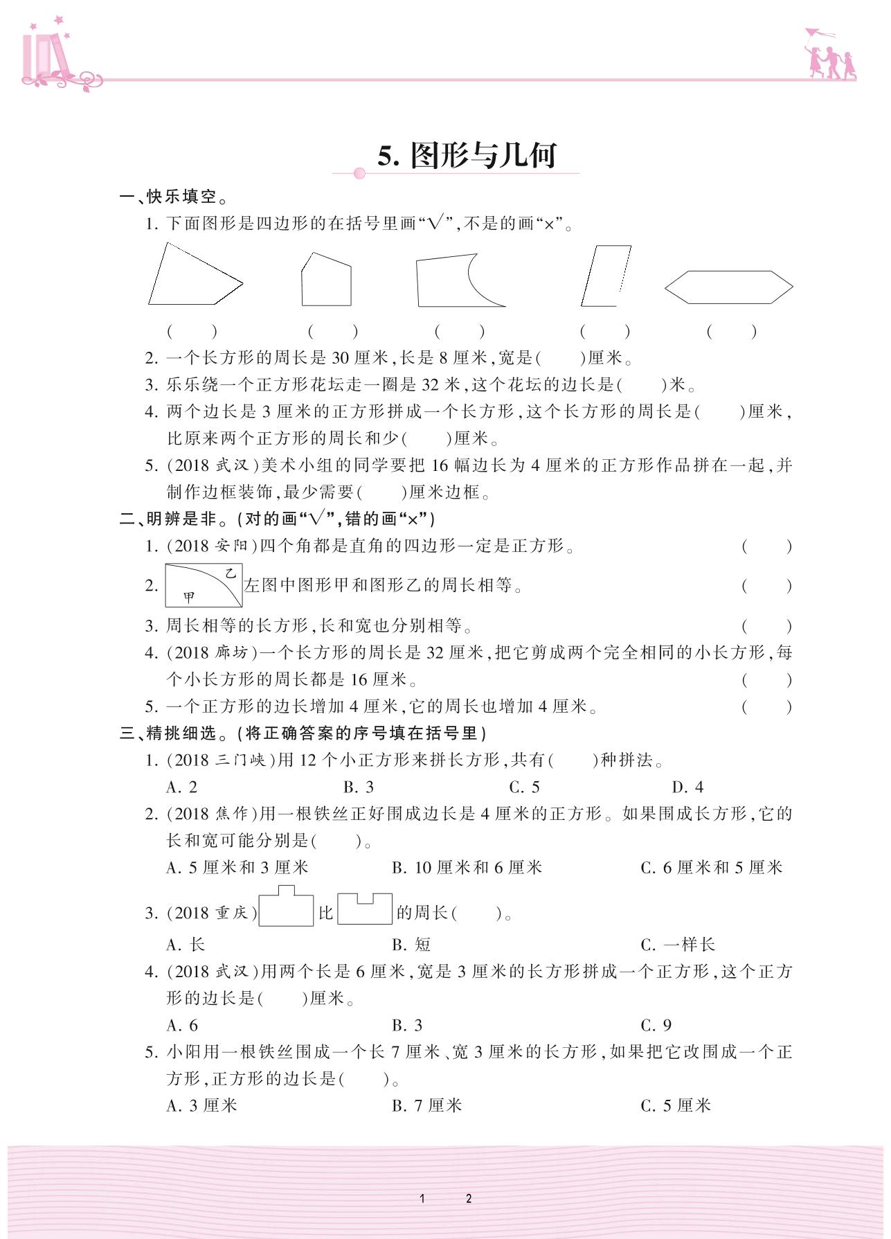 2020上册三年级数学人教版 10 总复习——5. 图形与几何