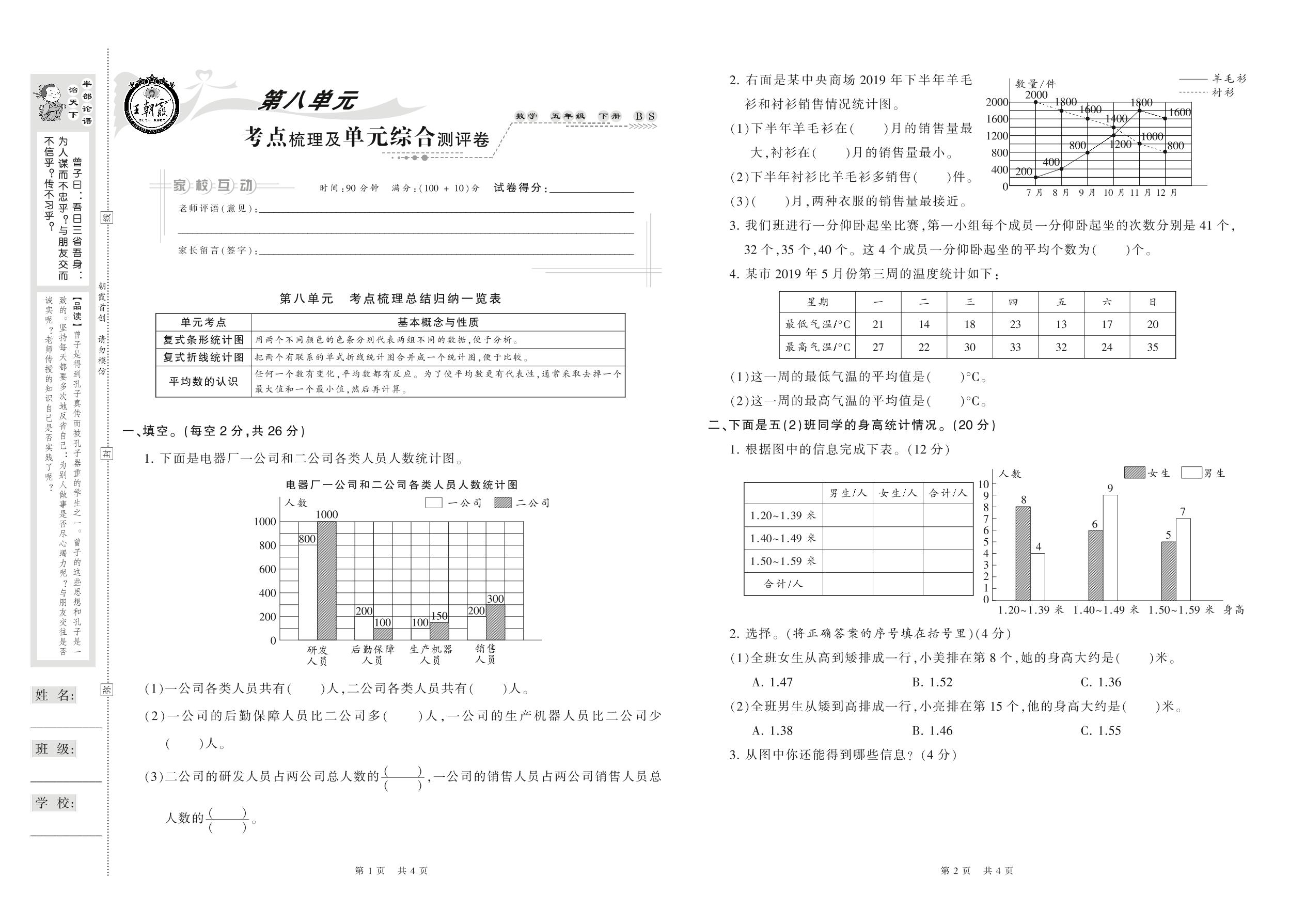 2021下册五年级数学北师版 第八单元 考点梳理及单元综合测评卷