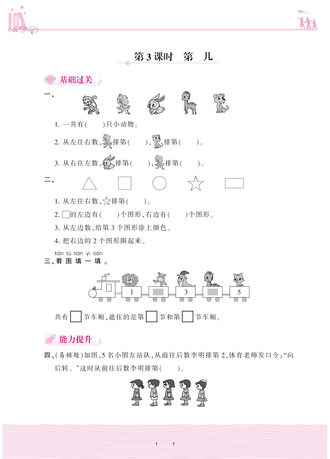 2020上册一年级数学人教版 3 1~5的认识和加减法——第3课时几