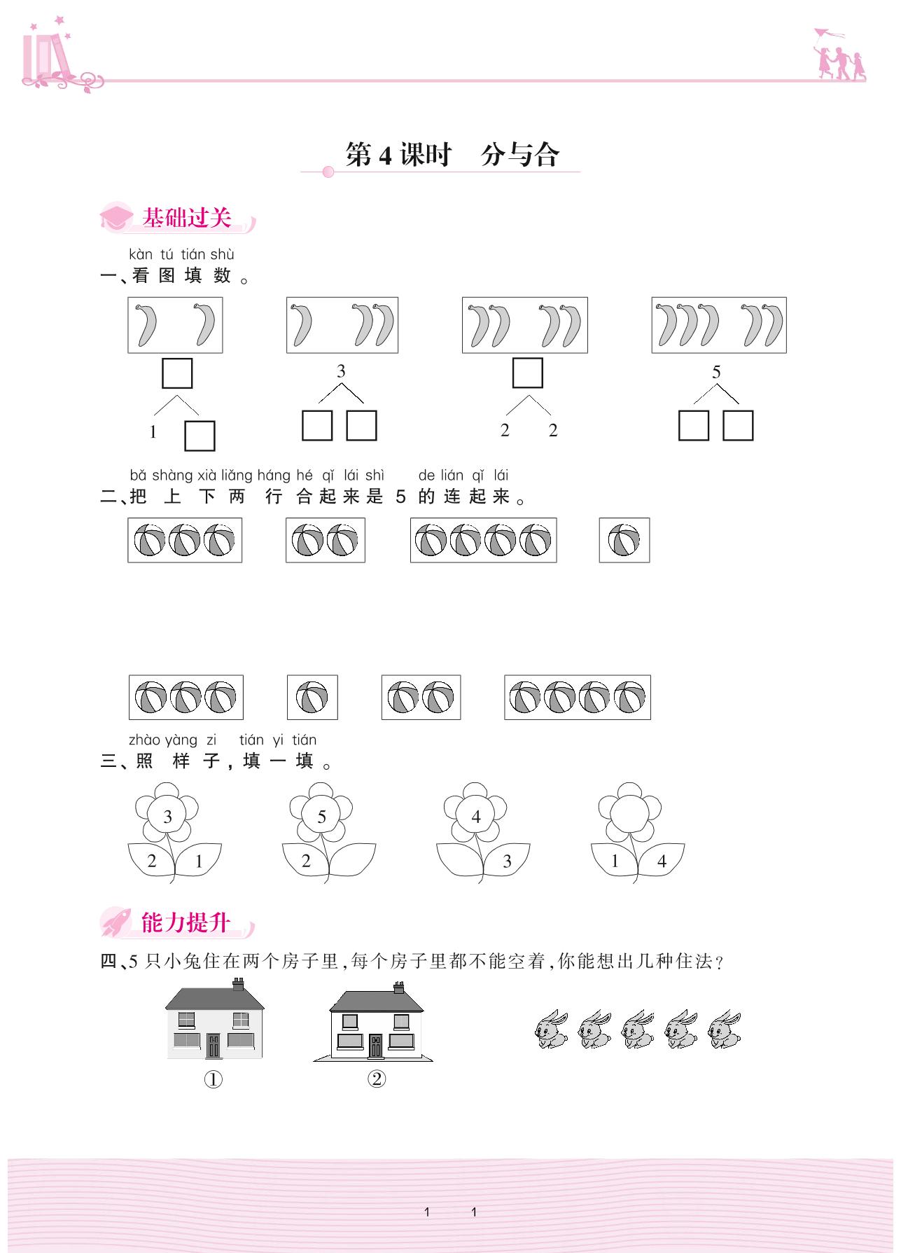 2020上册一年级数学人教版 3 1~5的认识和加减法——第4课时 分与合