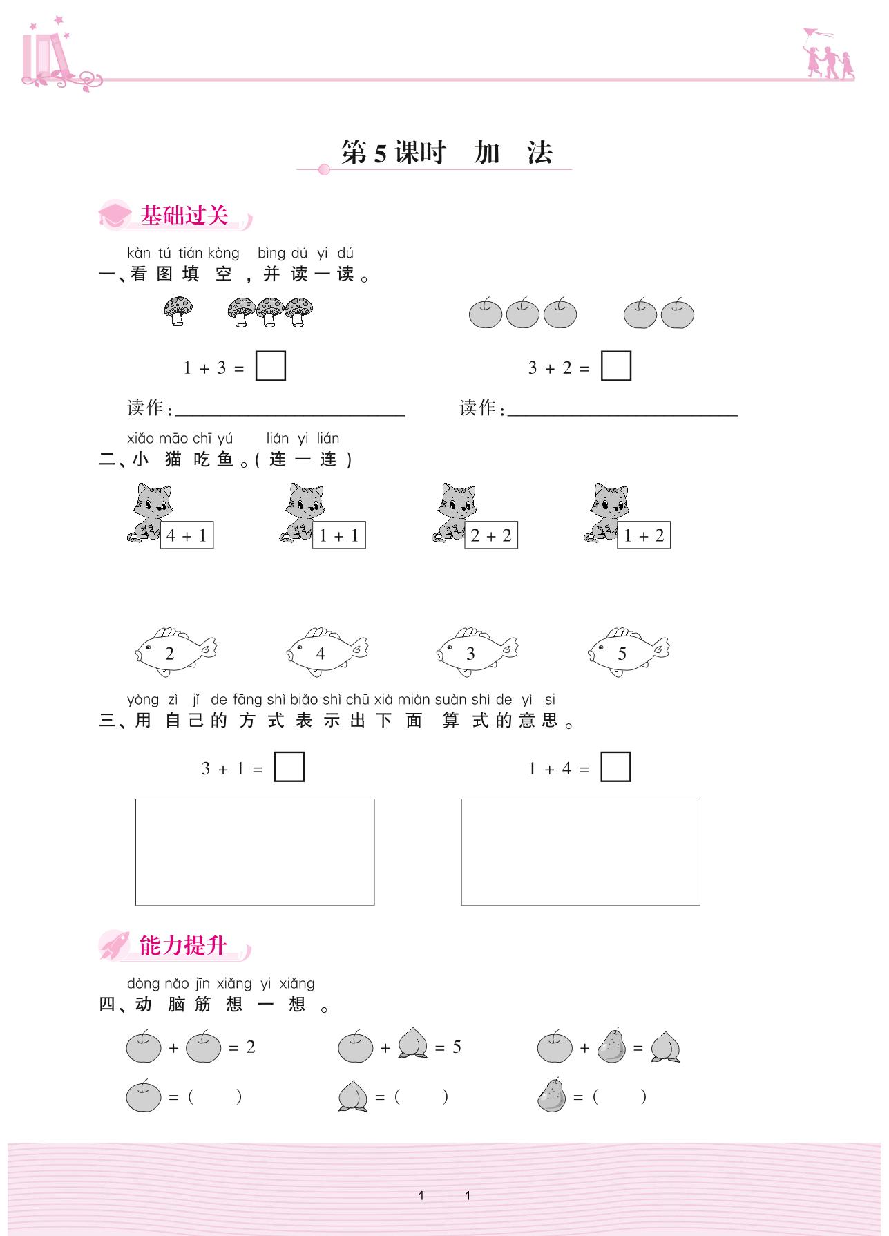 2020上册一年级数学人教版 3 1~5的认识和加减法——第5课时 加法