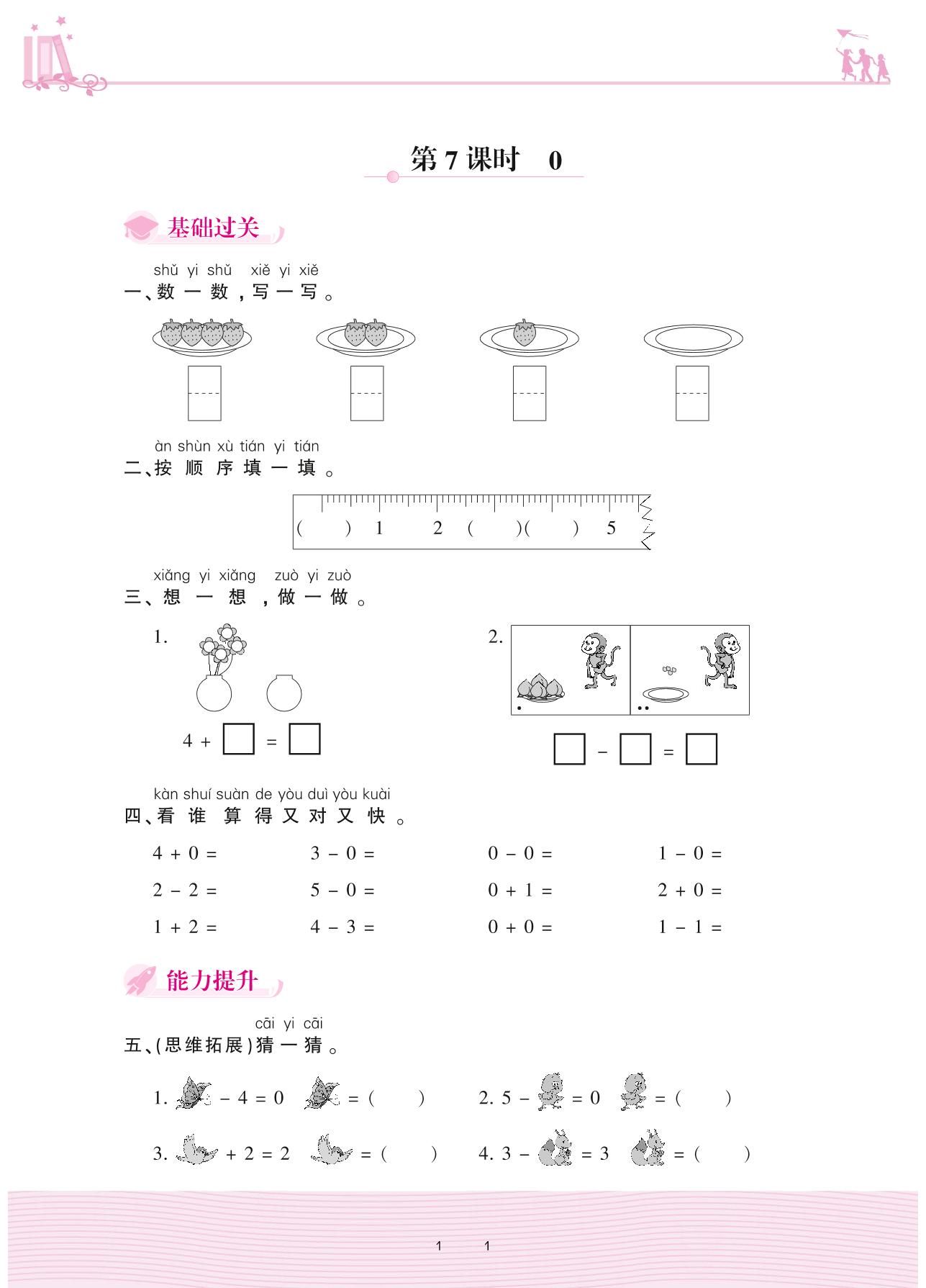 2020上册一年级数学人教版 3 1~5的认识和加减法——第7课时 0