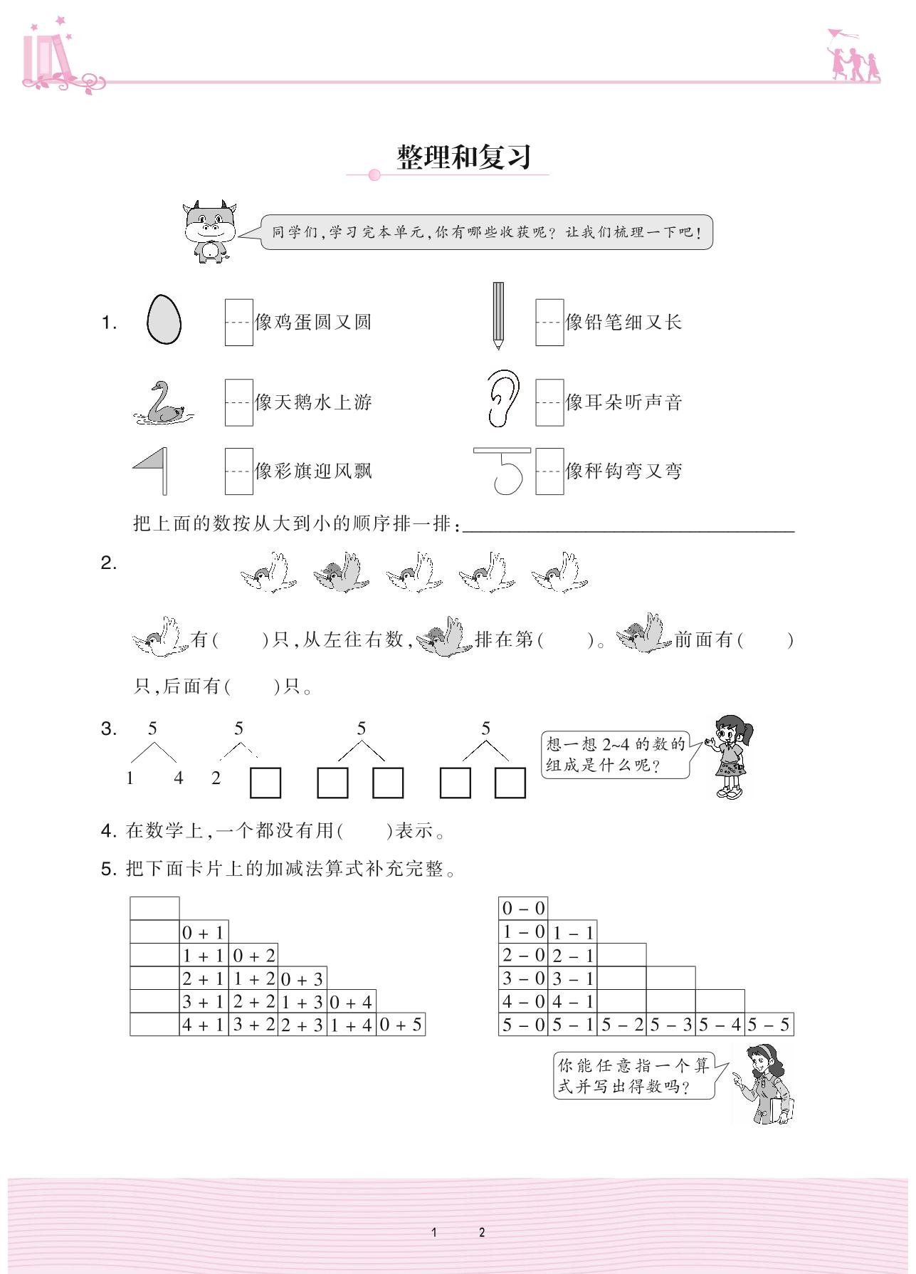 2020上册一年级数学人教版 3 1~5的认识和加减法——整理和复习