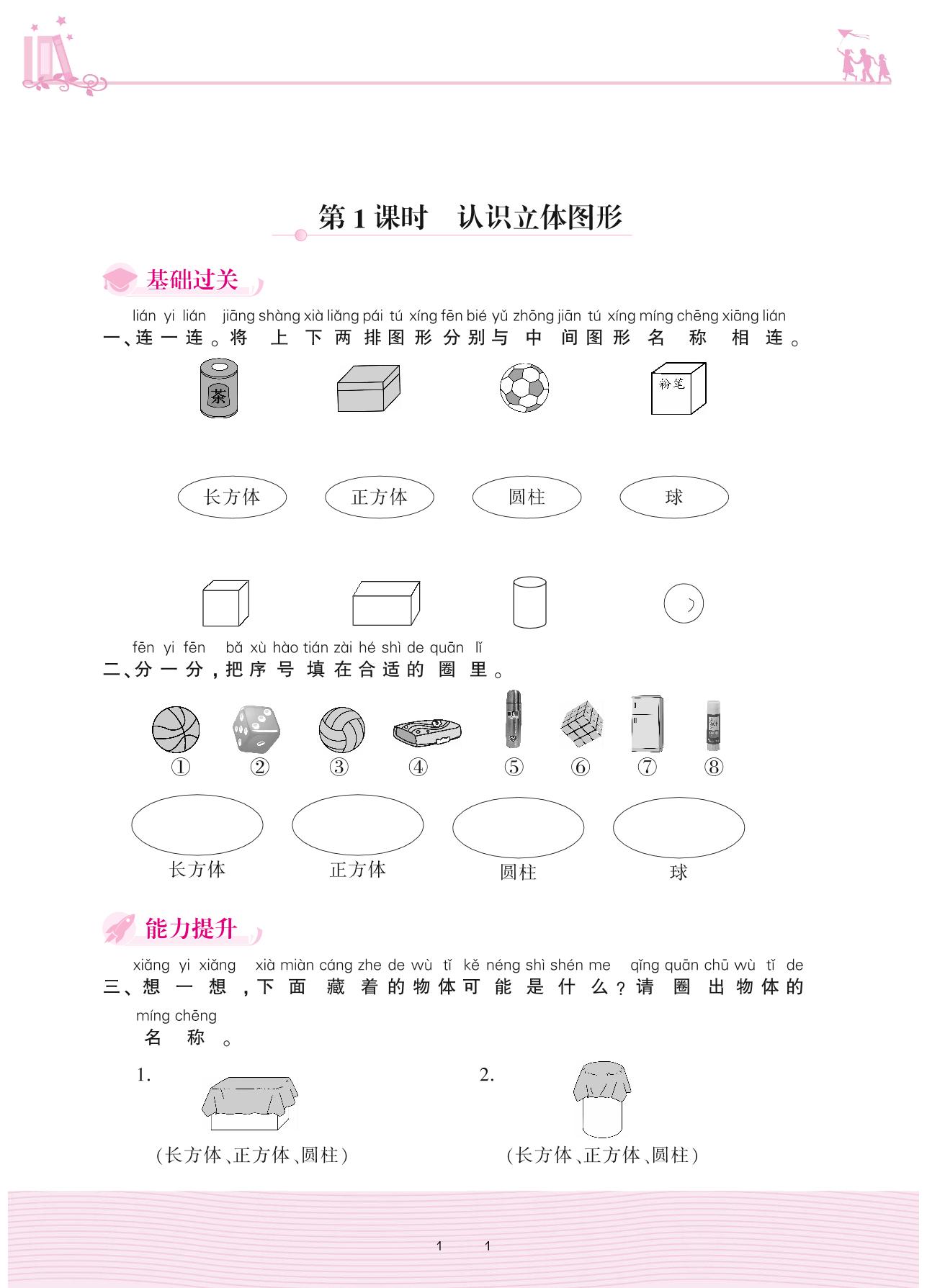 2020上册一年级数学人教版 4 认识图形(一)——第1课时 认识立体图形
