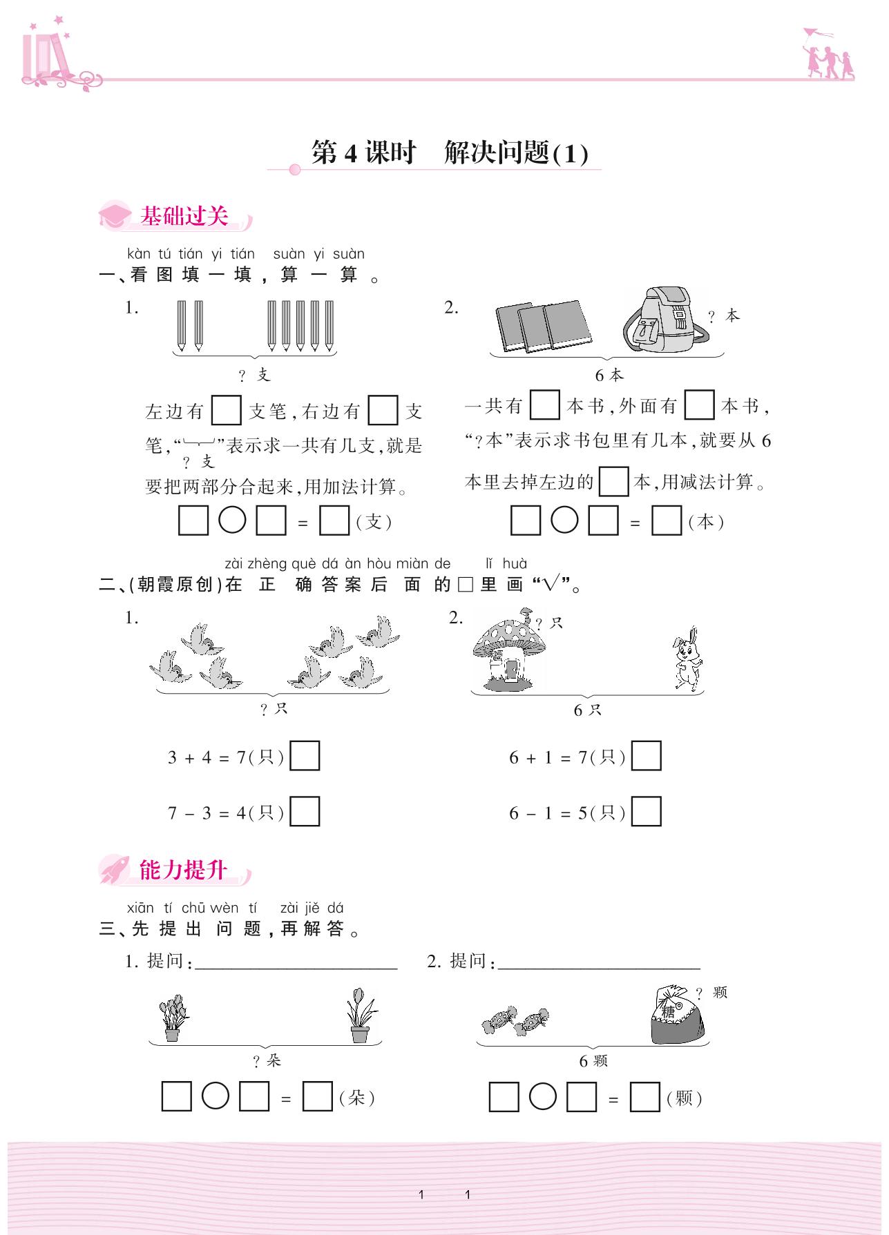 2020上册一年级数学人教版 5 6~10的认识和加减法——第4课时 解决问题(1)