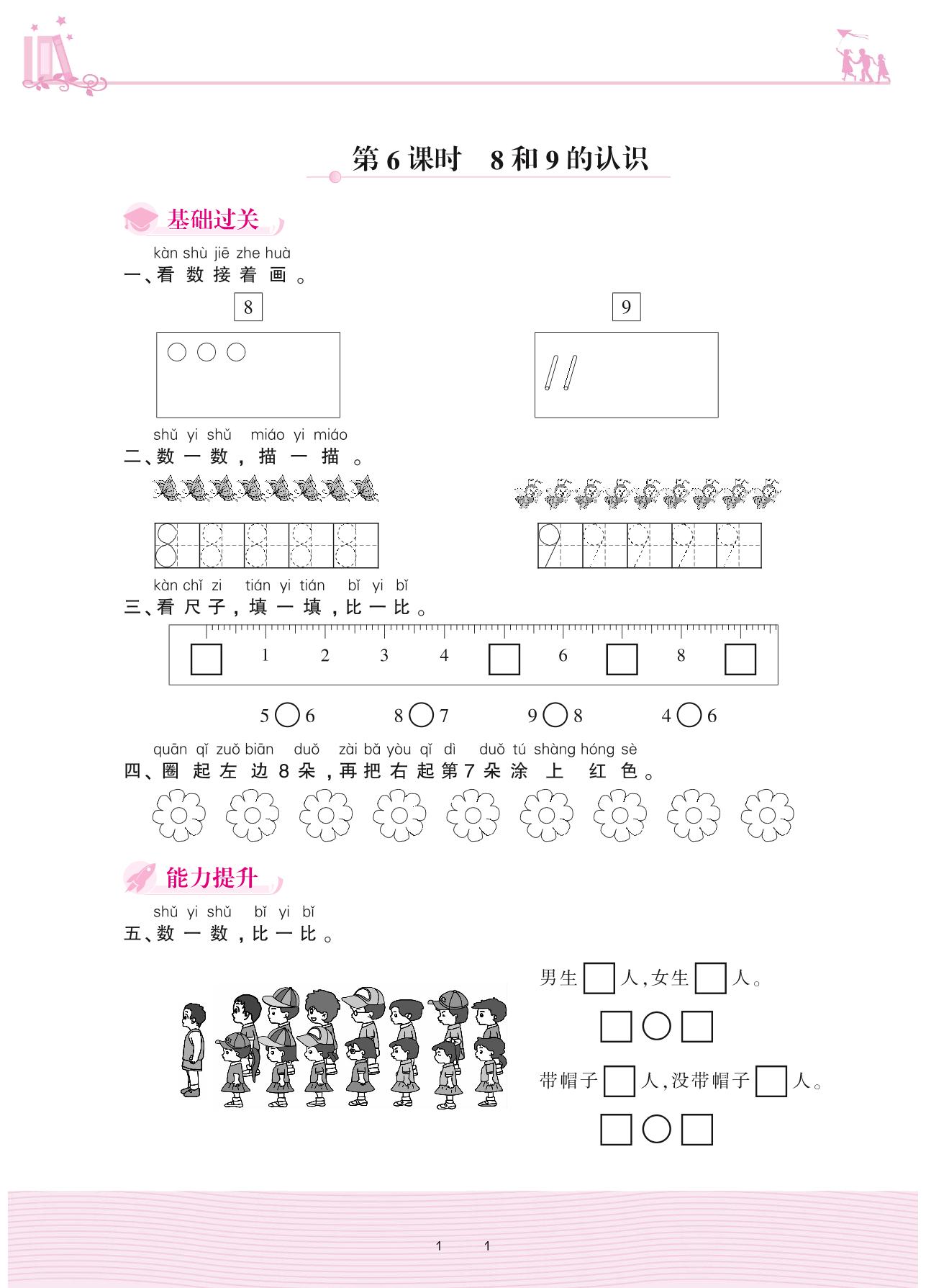 2020上册一年级数学人教版 5 6~10的认识和加减法——第6课时 8和9的认识