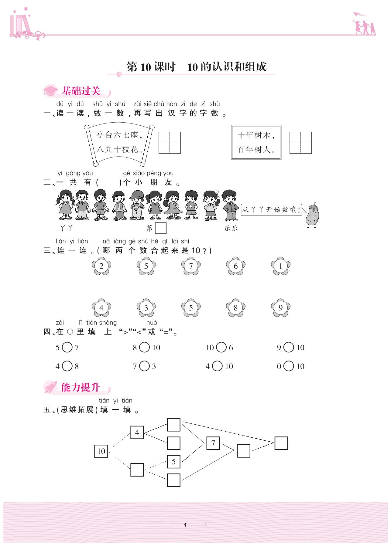 2020上册一年级数学人教版 5 6~10的认识和加减法——第10课时 10的认识和组成