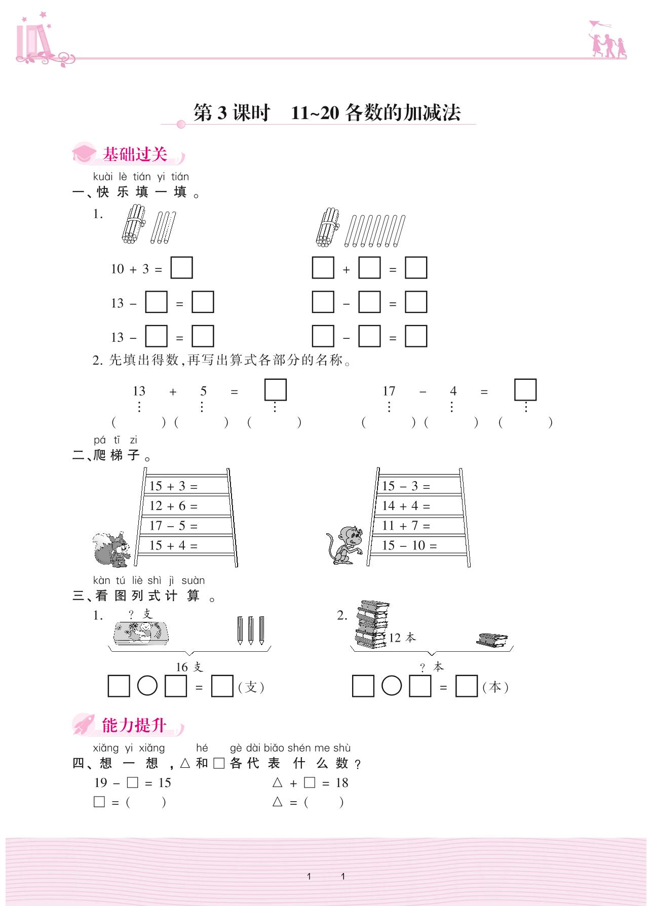 2020上册一年级数学人教版 6 11~20各数的认识——第3课时 11~20各数的加减法