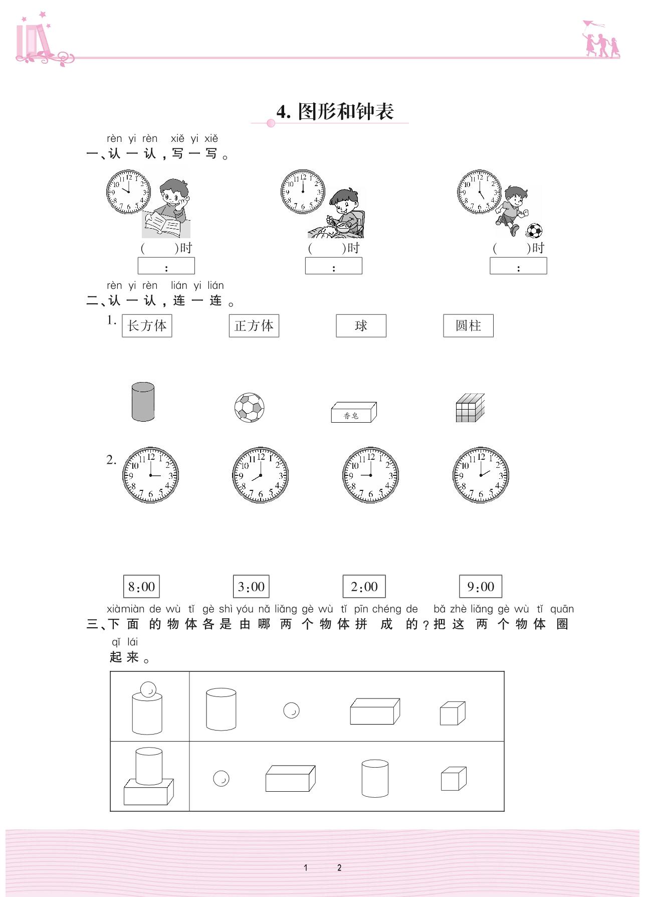 2020上册一年级数学人教版 9 总复习——4. 图形和钟表