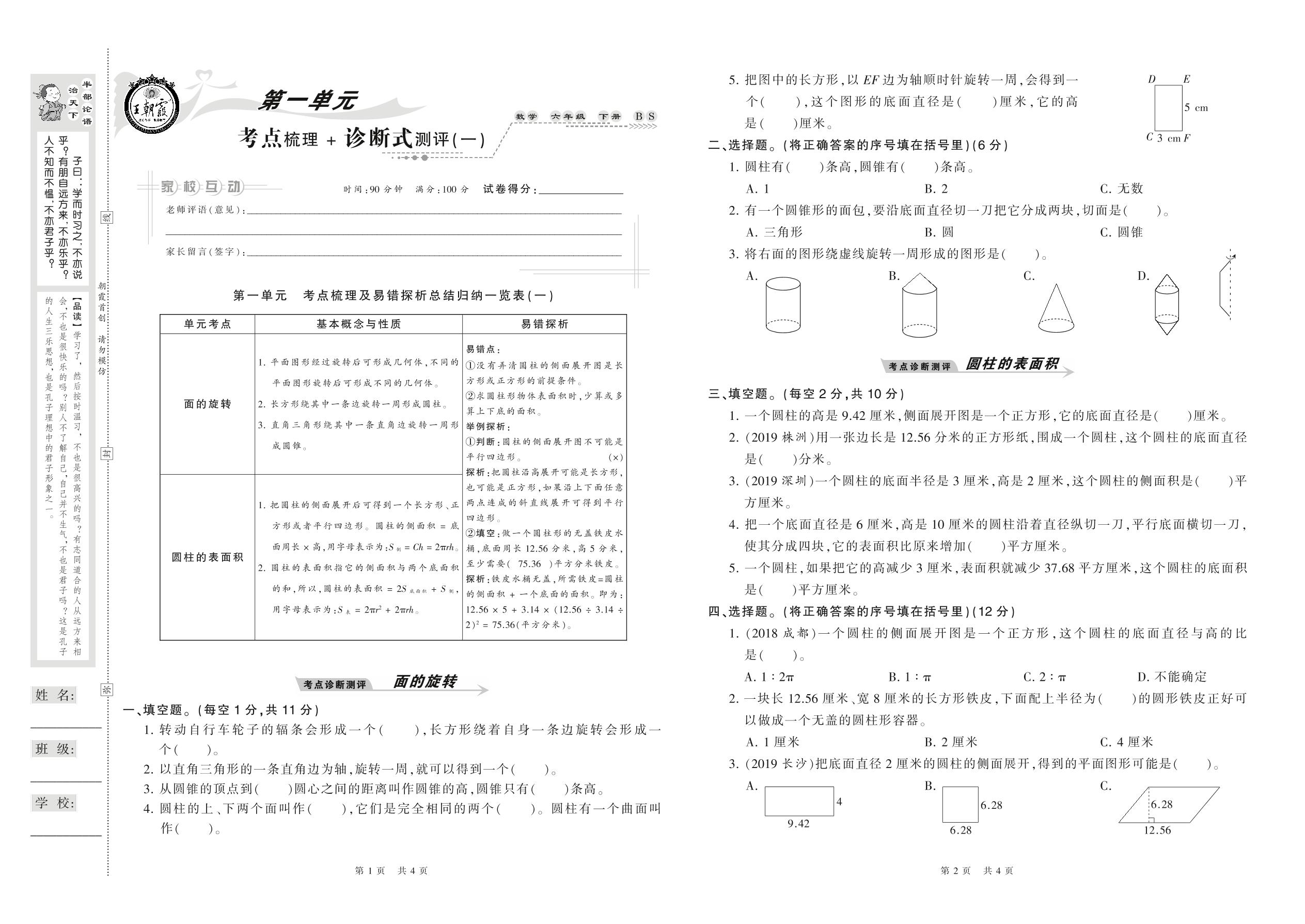 2021下册六年级数学北师版 第一单元 考点梳理+诊断式测评(一)