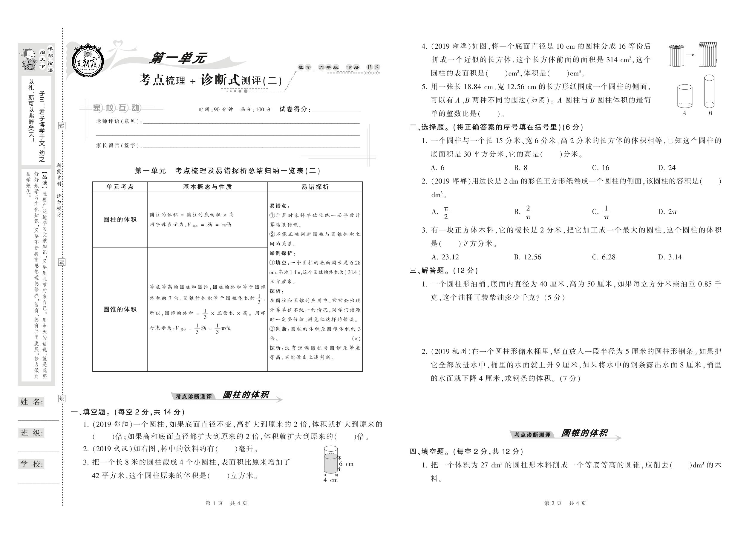 2021下册六年级数学北师版 第一单元 考点梳理+诊断式测评(二)