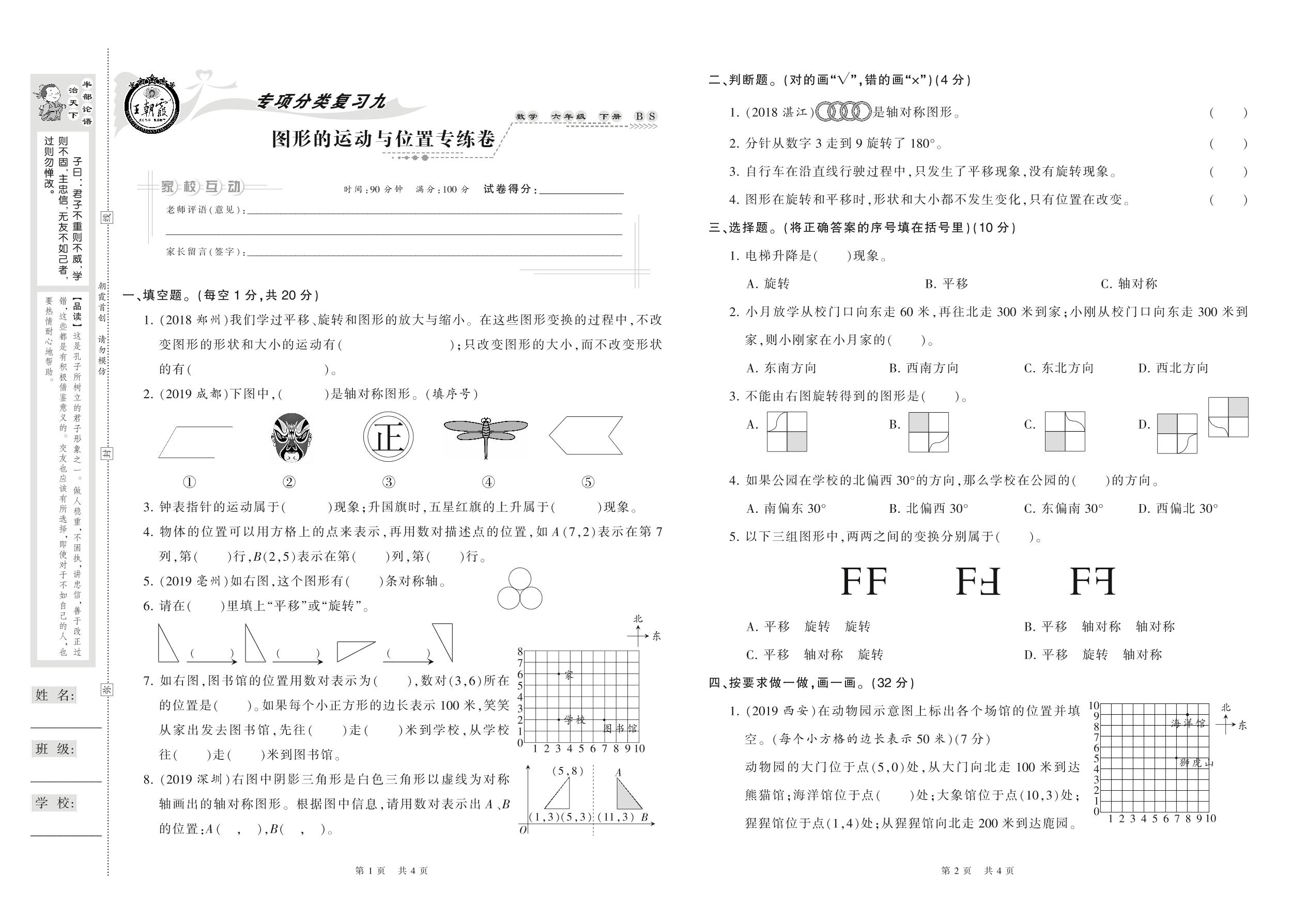 2021下册六年级数学北师版 图形的运动与位置专练卷