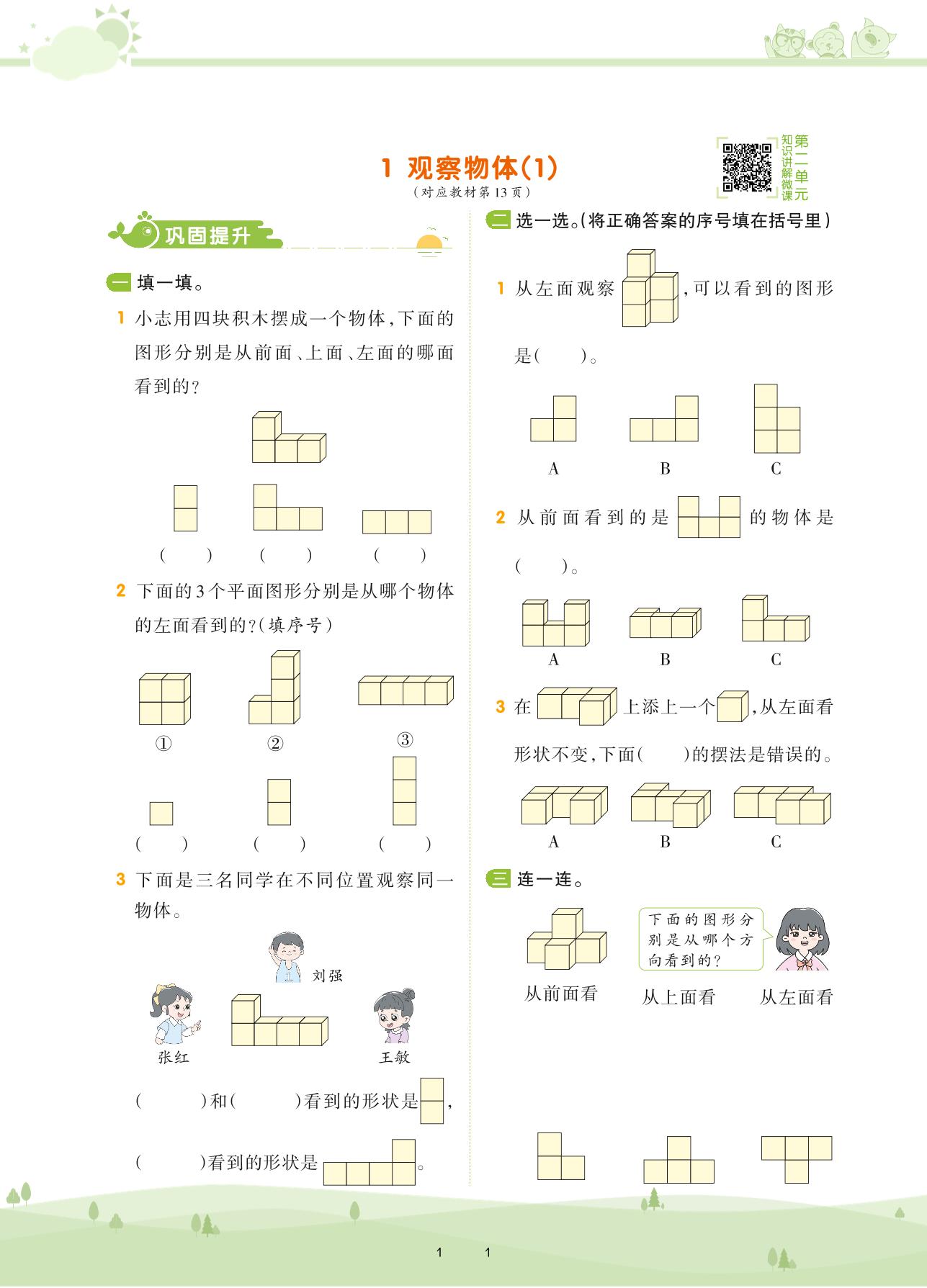 2021下册一年级数学人教版 第二单元 观察物体(二)——1 观察物体(1)