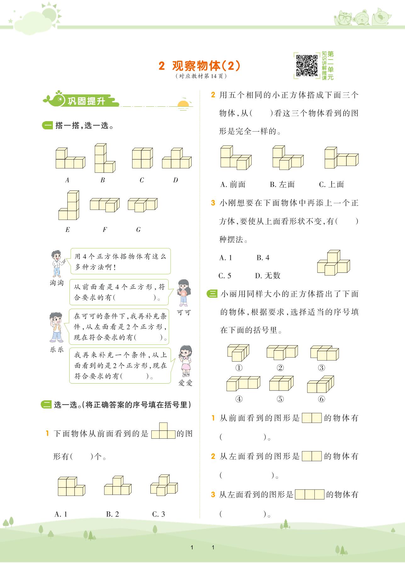2021下册一年级数学人教版 第二单元 观察物体(二)——2 观察物体(2)