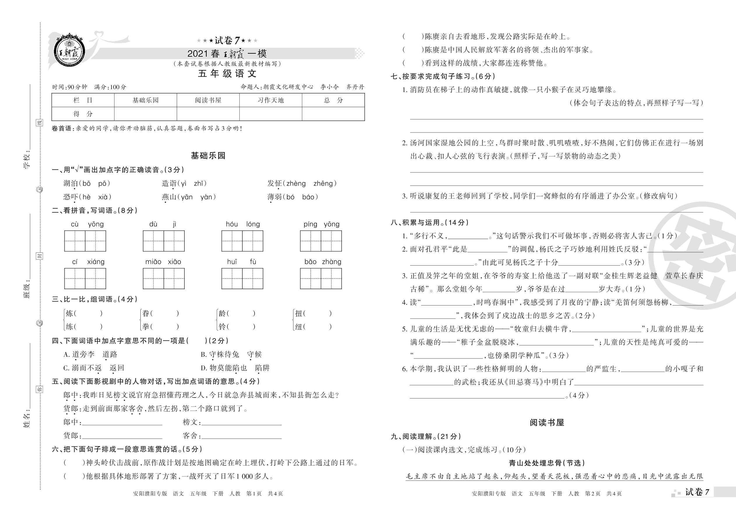 王朝霞期末模拟卷五年级下册语文(人教版)_R210801181441【7】