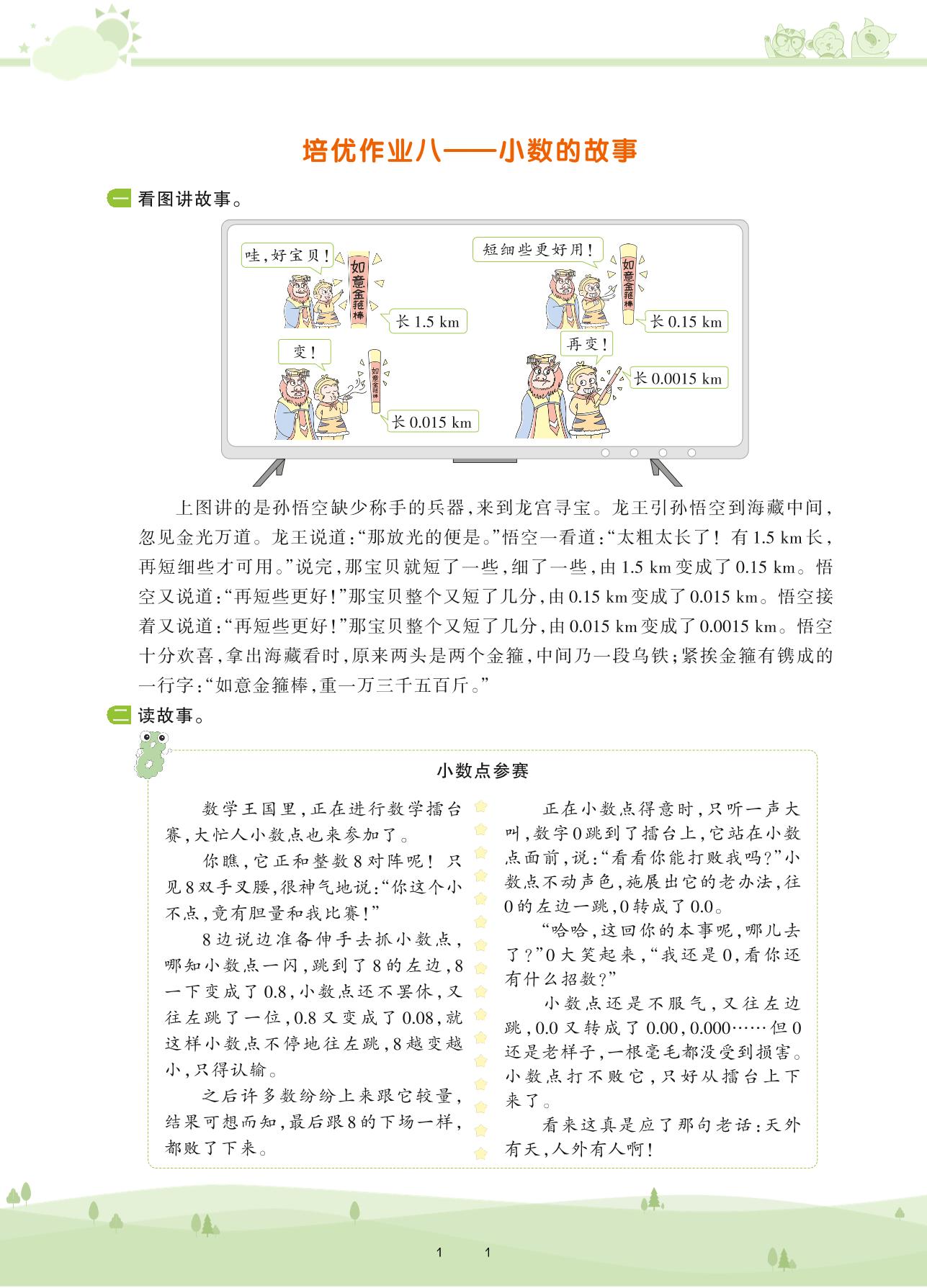 2021下册一年级数学人教版 第四单元 小数的意义和性质——培优作业八 小数的故事