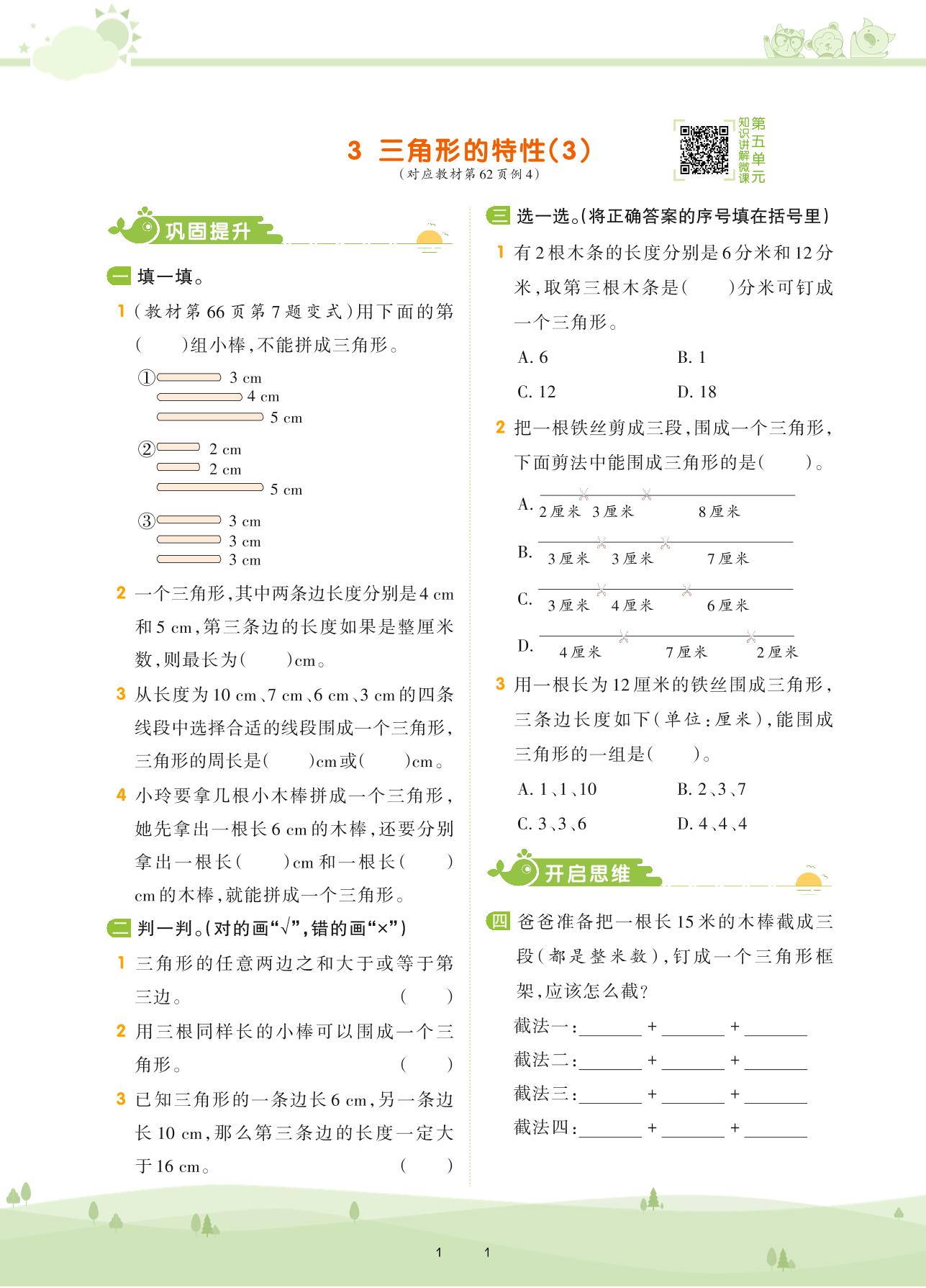 2021下册一年级数学人教版 第五单元 三角形——3 三角形的特性(3)