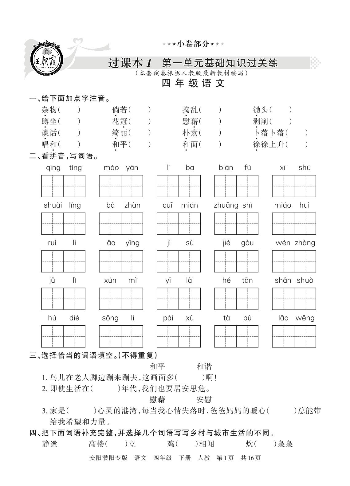 王朝霞期末小卷四年级下册语文(人教版)_R210801181500【0】