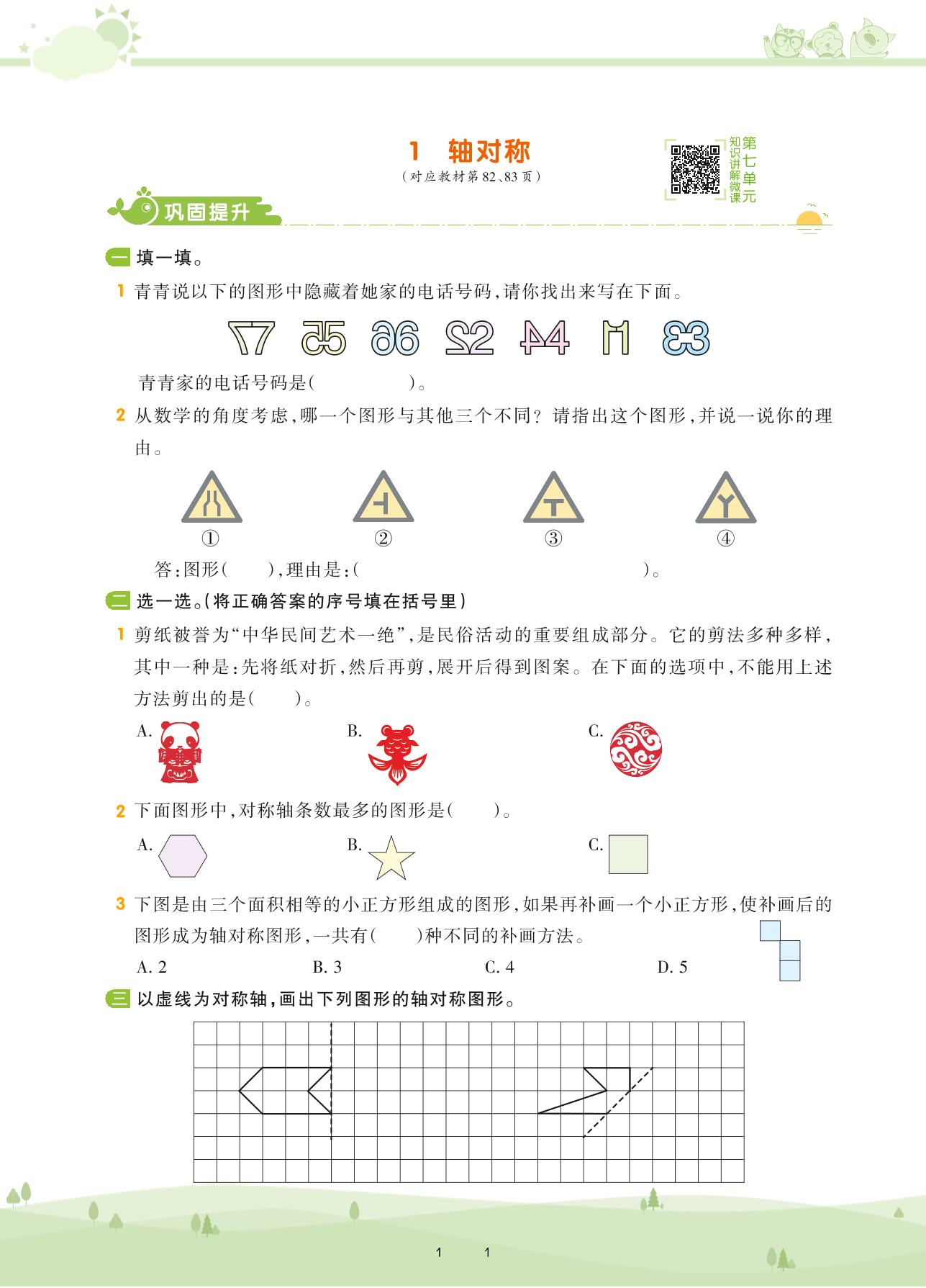 2021下册一年级数学人教版 第七单元 图形的运动(二)——1 轴对称