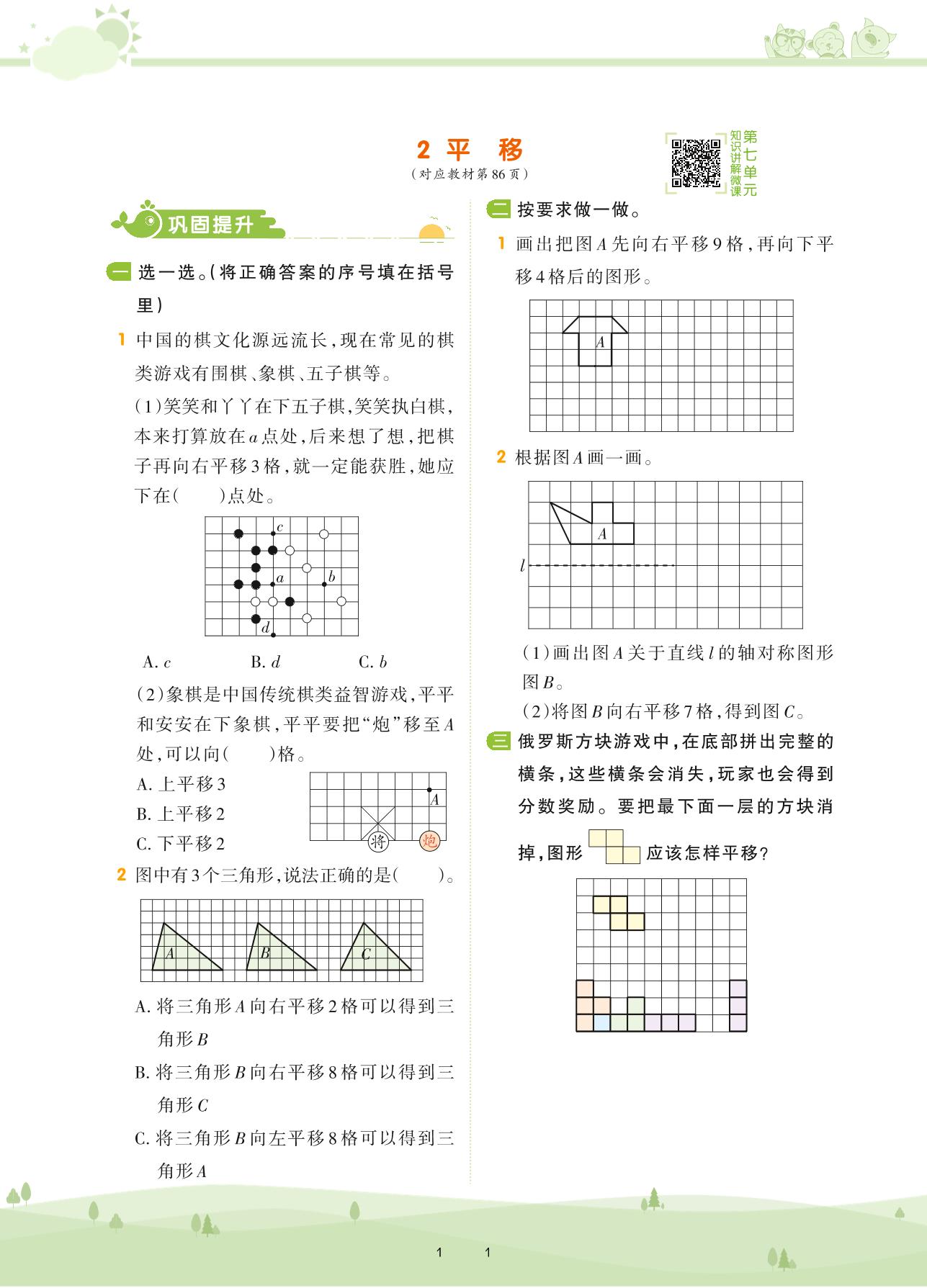2021下册一年级数学人教版 第七单元 图形的运动(二)——2 平移