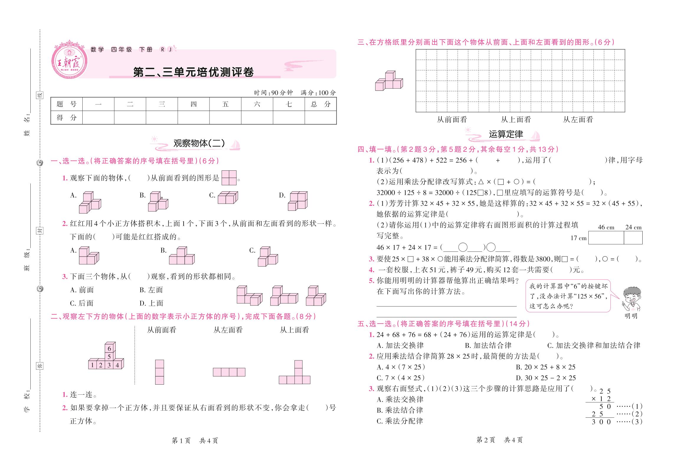 一年级数学人教版下册单元卷
