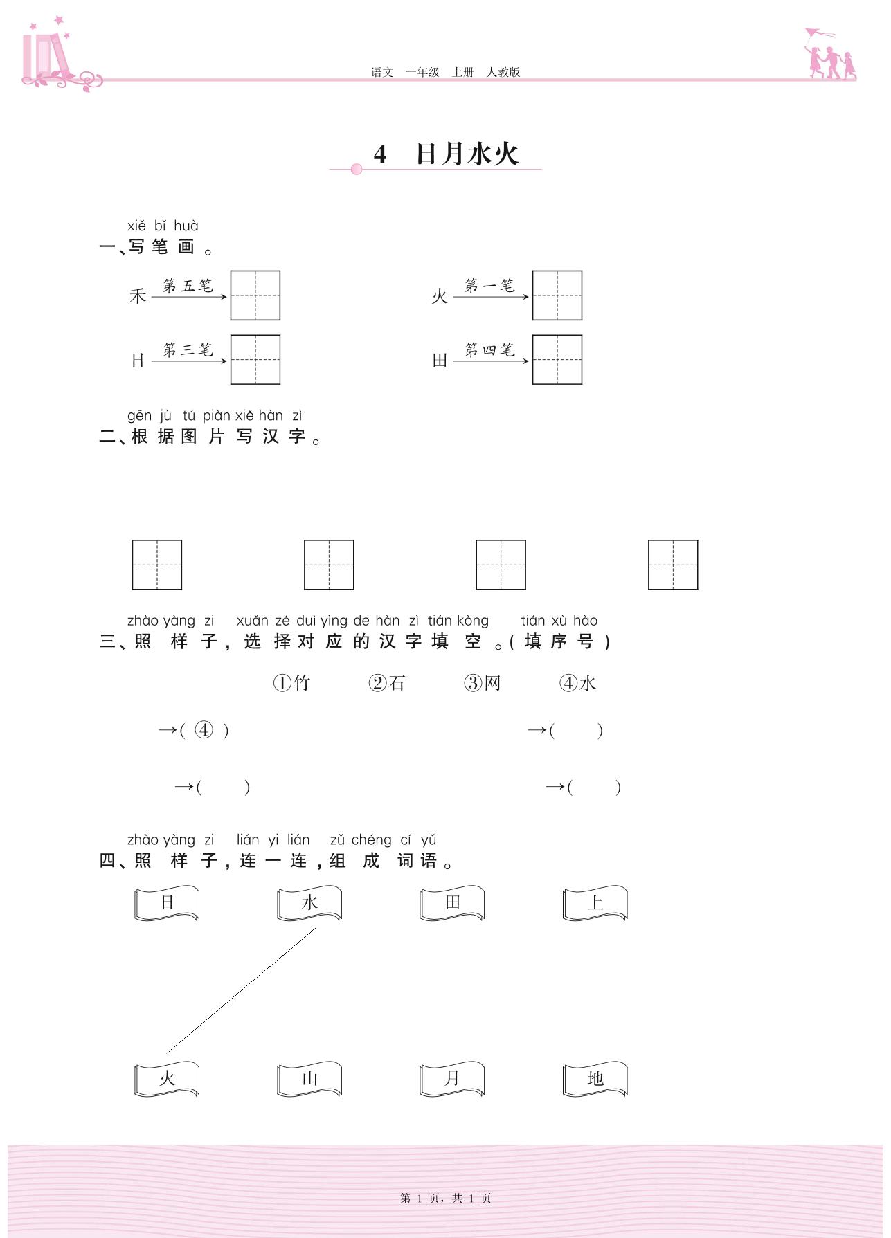 2020上册一年级语文人教版 第一单元 识字——4 日月水火