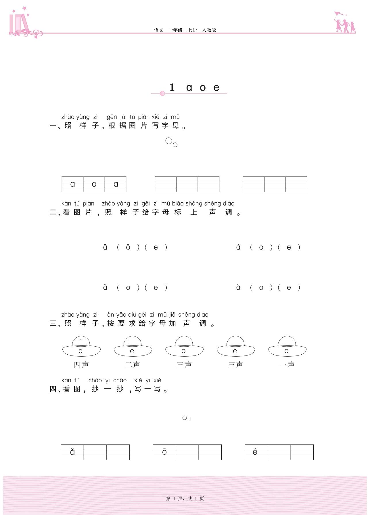 2020上册一年级语文人教版 第二单元 汉语拼音——1 ɑ o e