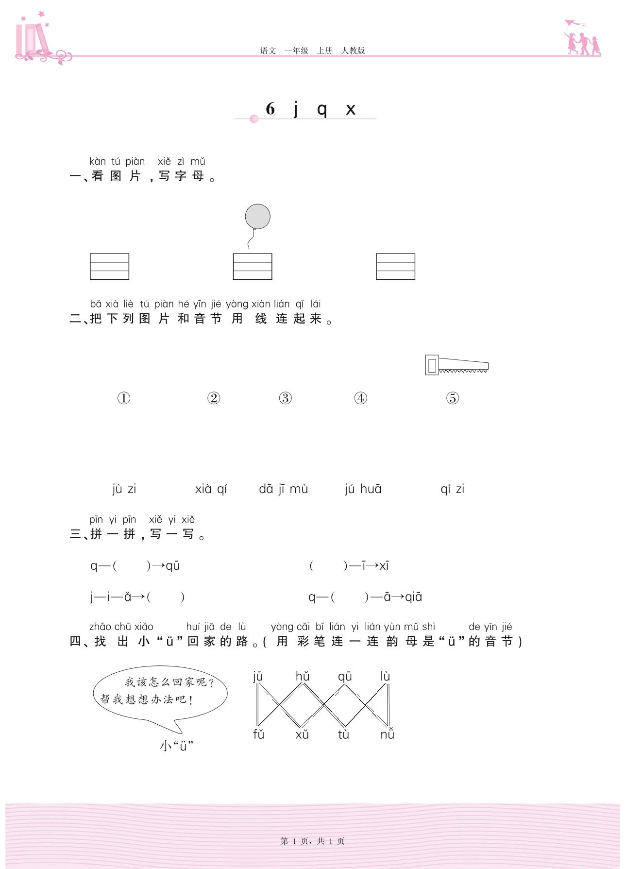 2020上册一年级语文人教版 第二单元 汉语拼音——6 j q x