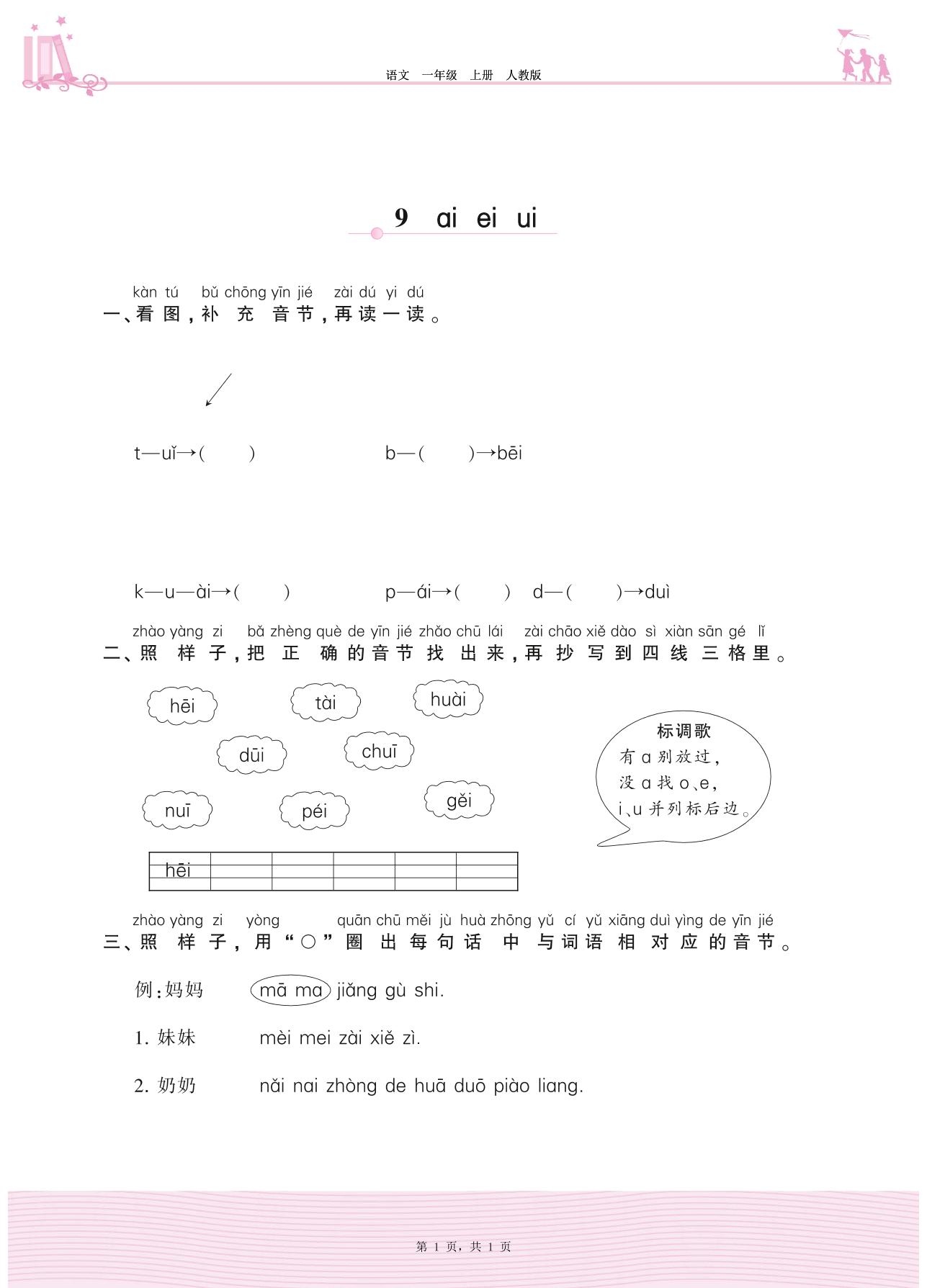 2020上册一年级语文人教版 第三单元 汉语拼音——9 ɑi ei ui