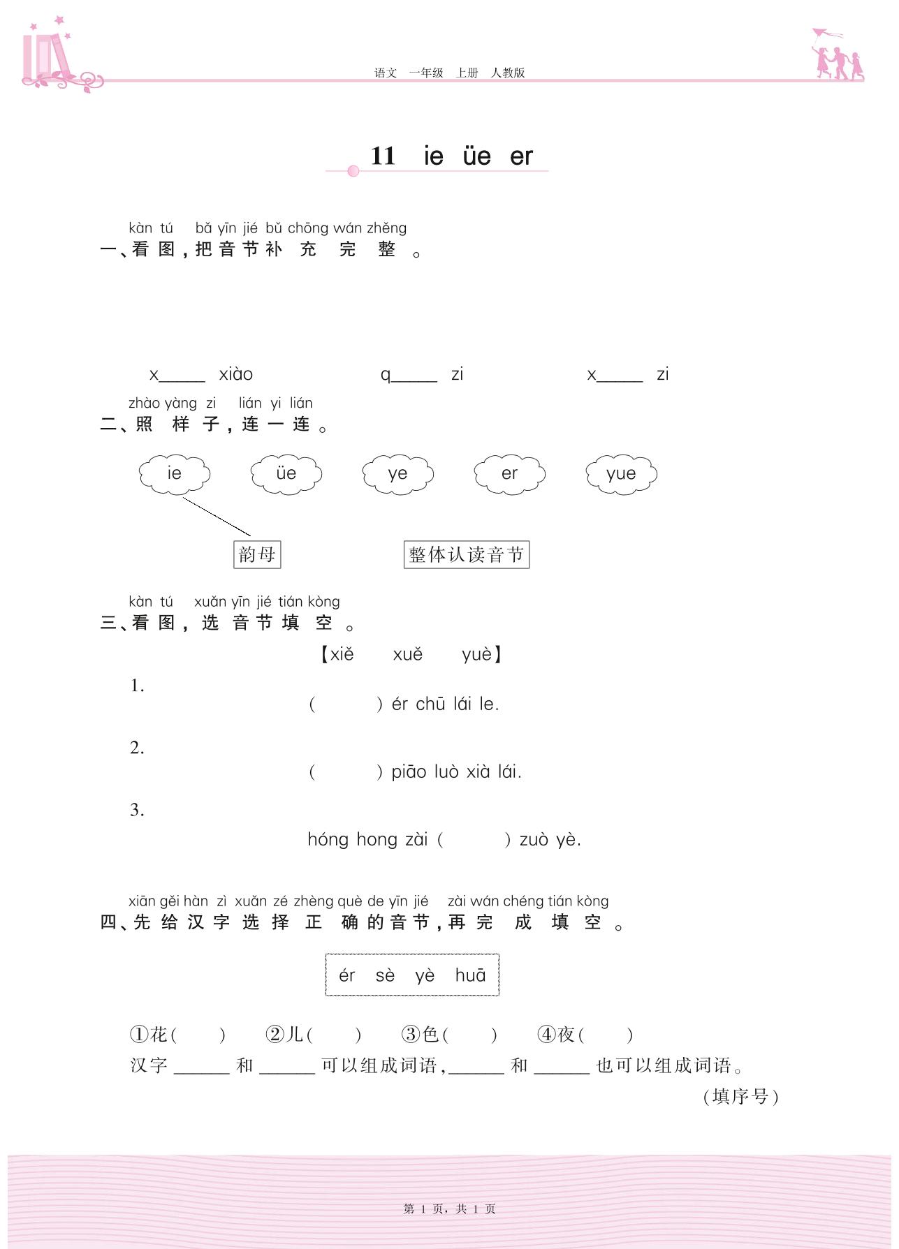 2020上册一年级语文人教版 第三单元 汉语拼音——11 ie üe er