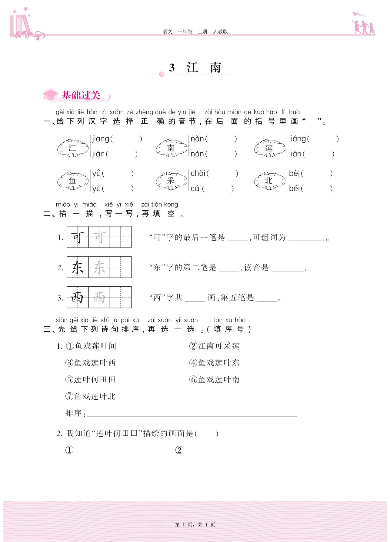 2020上册一年级语文人教版 第四单元 课文——3 江南