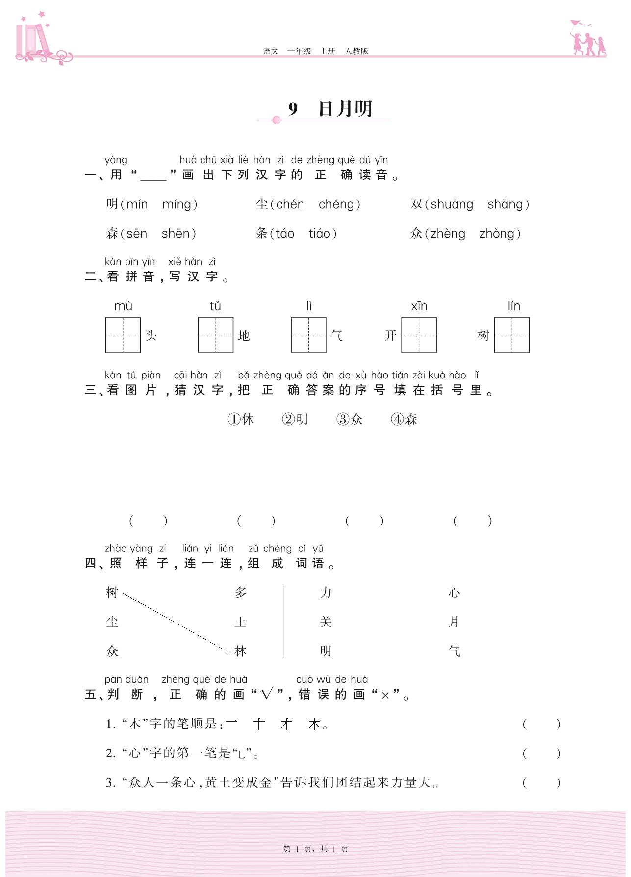 2020上册一年级语文人教版 第五单元 识字——9 日月明