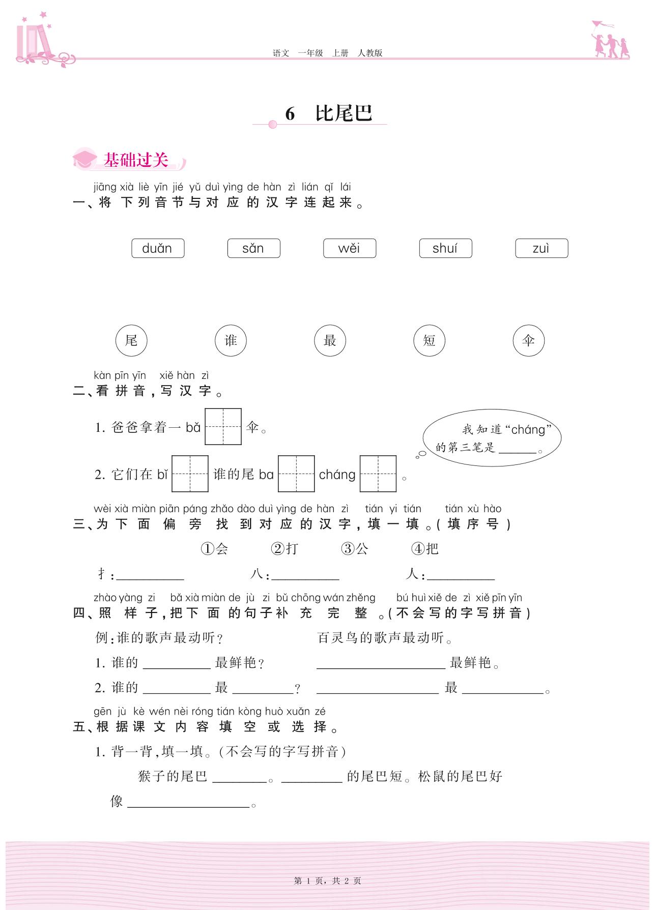 2020上册一年级语文人教版 第六单元 课文——6 比尾巴