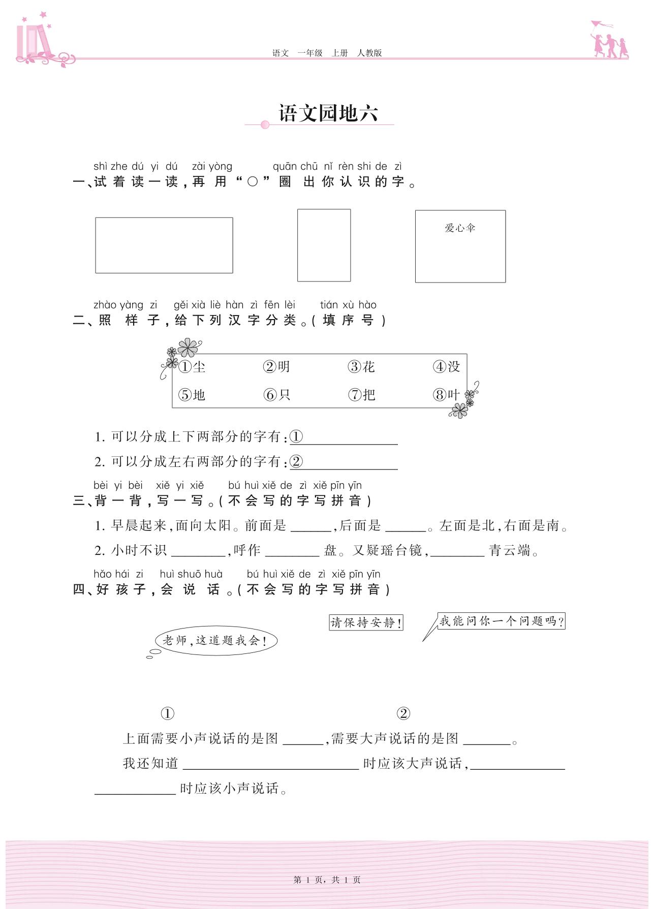 2020上册一年级语文人教版 第六单元 课文——语文园地六