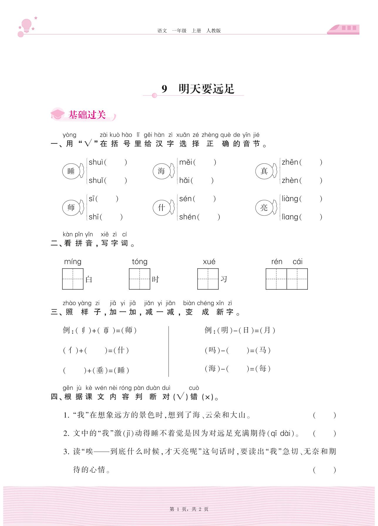 2020上册一年级语文人教版 第七单元 课文——9 明天要远足