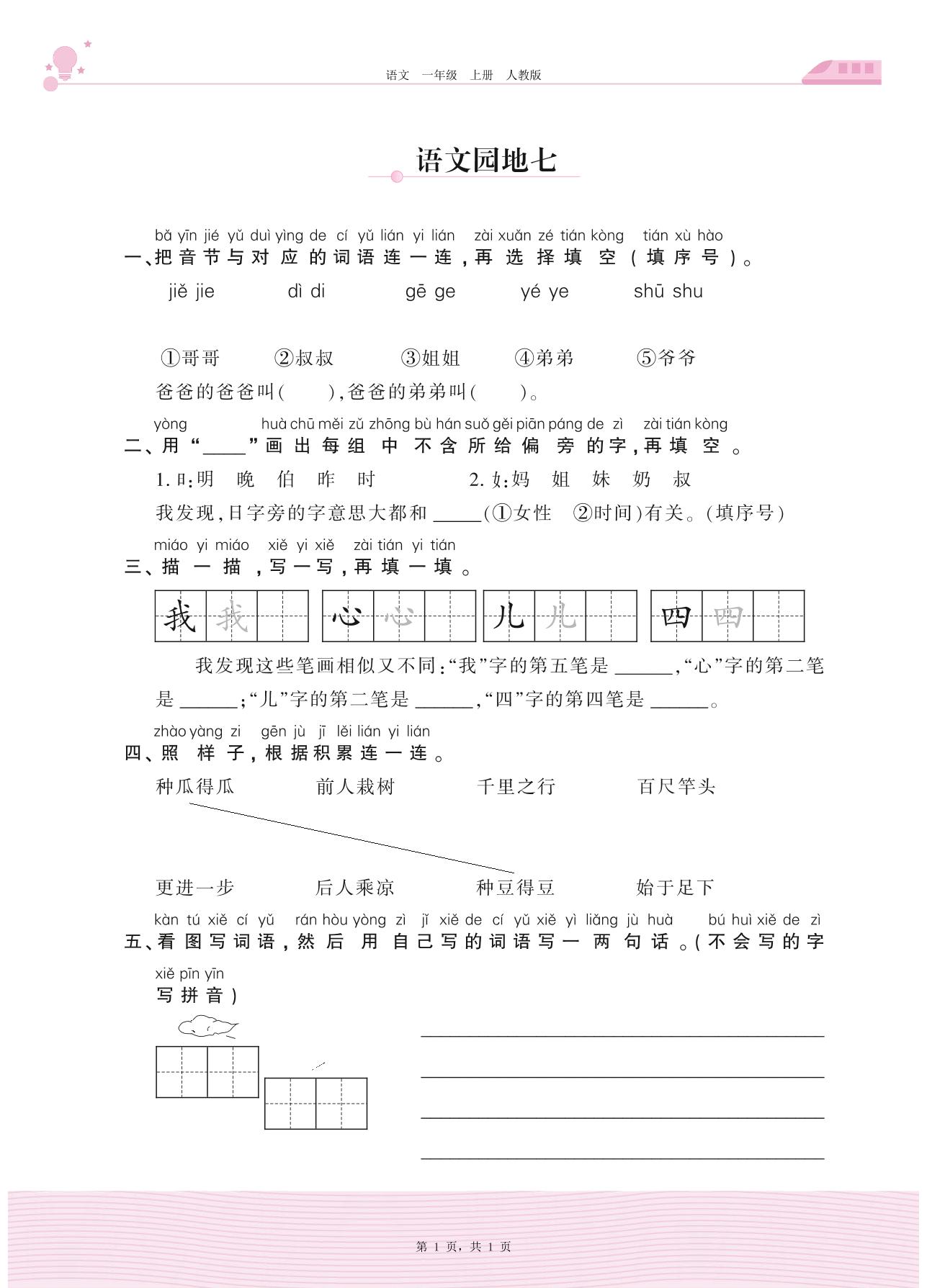 2020上册一年级语文人教版 第七单元 课文——语文园地七