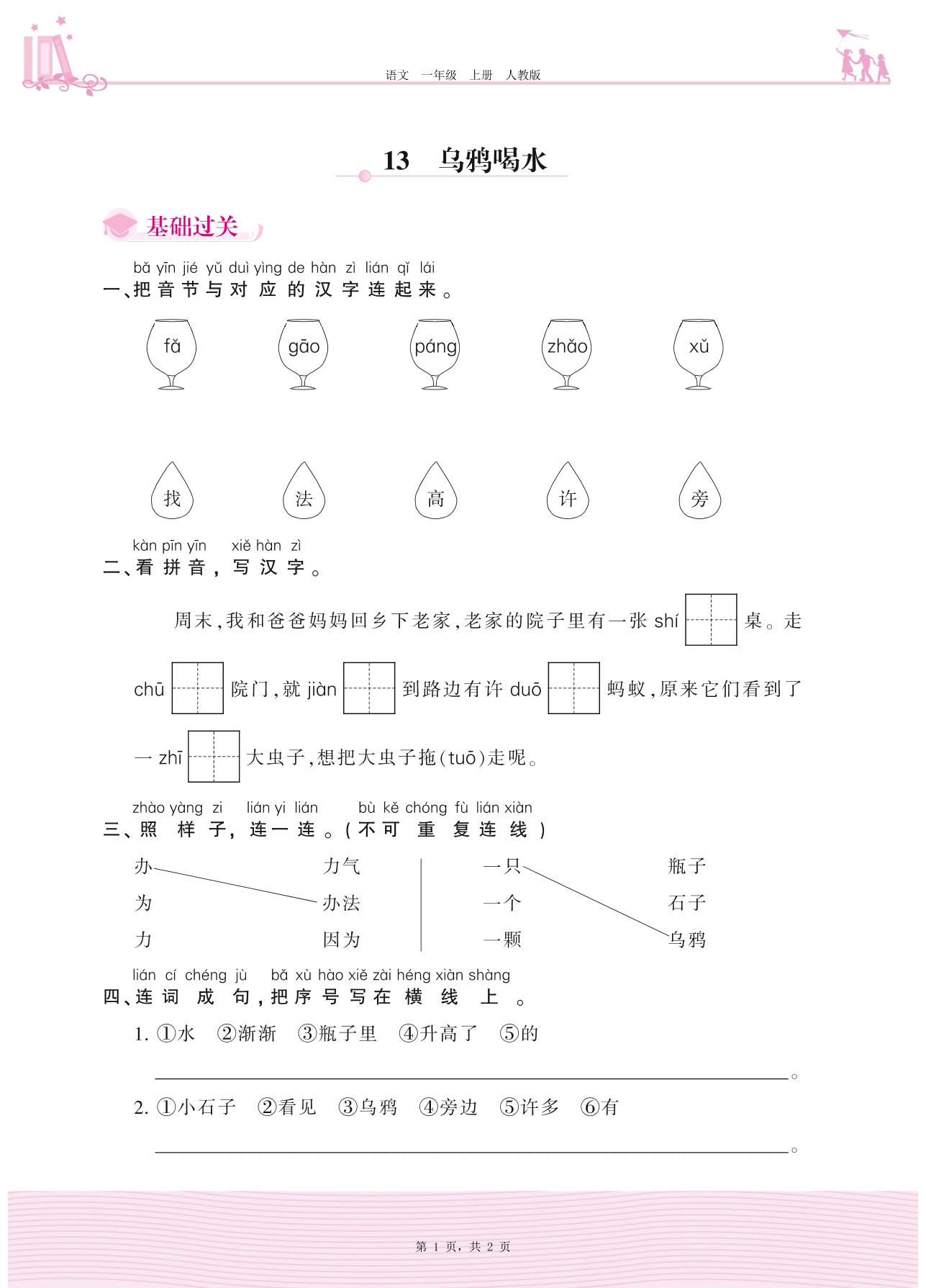 2020上册一年级语文人教版 第八单元 课文——13 乌鸦喝水